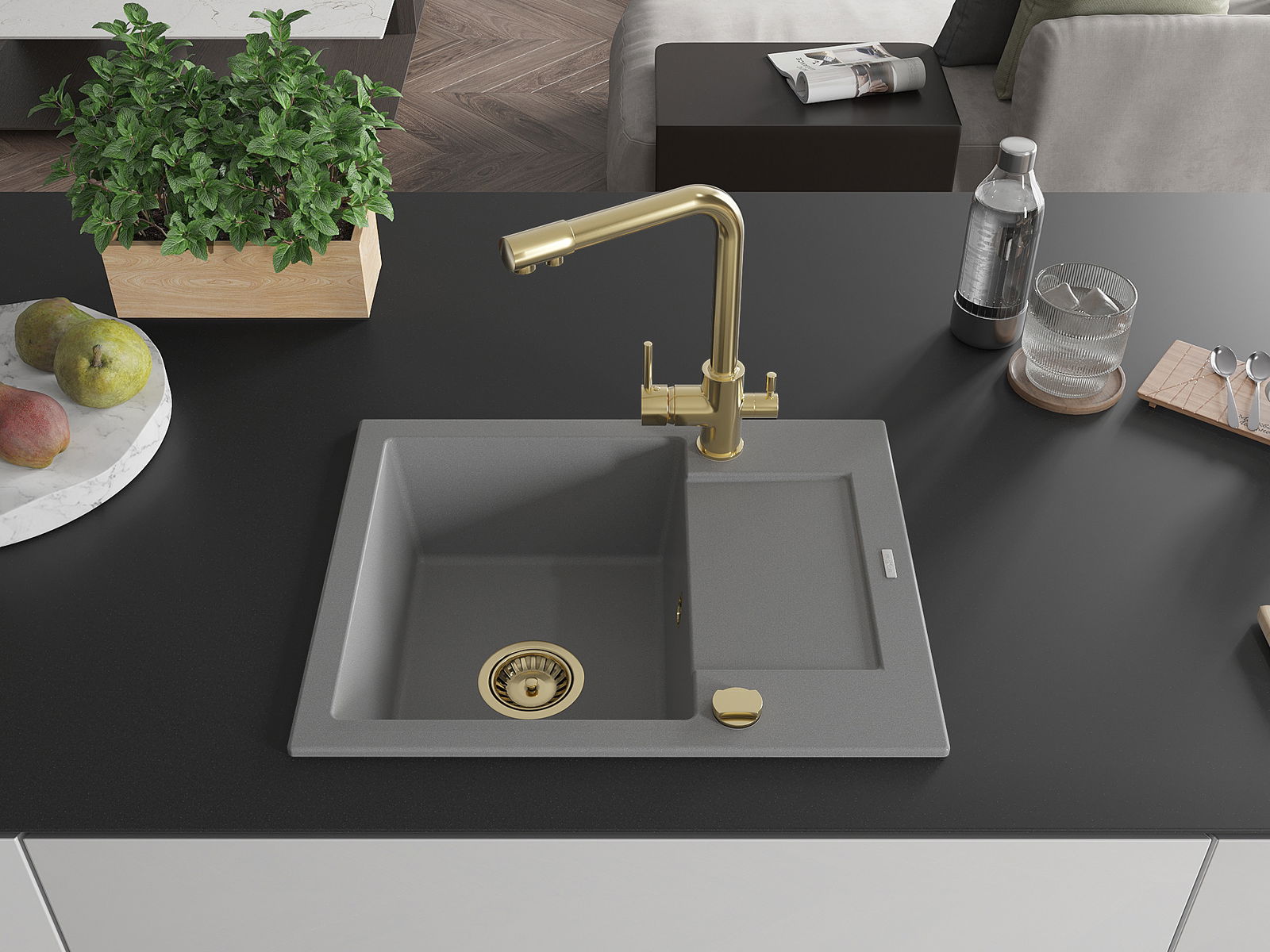 Povrch umývadla je odolný voči škvrnám a sfarbeniu, vďaka čomu sa ľahko čistí a zachováva si svoju farbu po dlhú dobu. Estetický a prakticky dopĺňajúci každú kuchyňu.