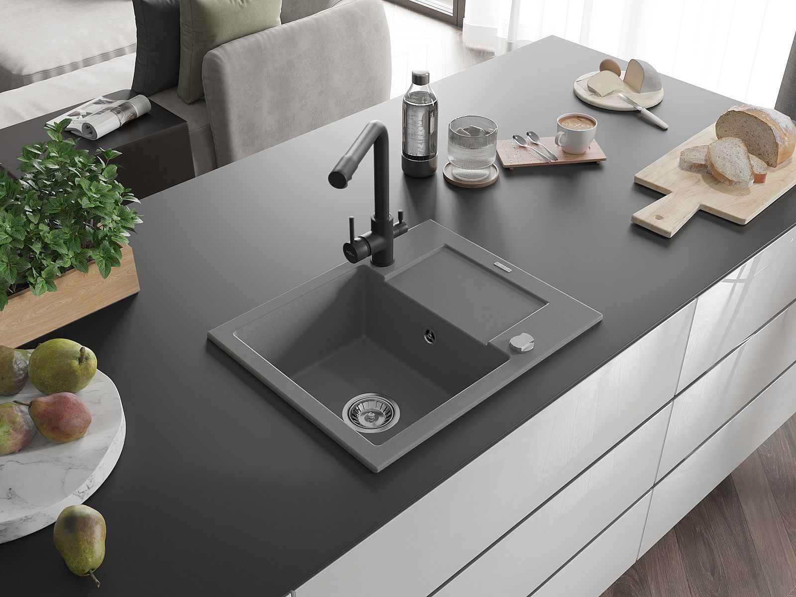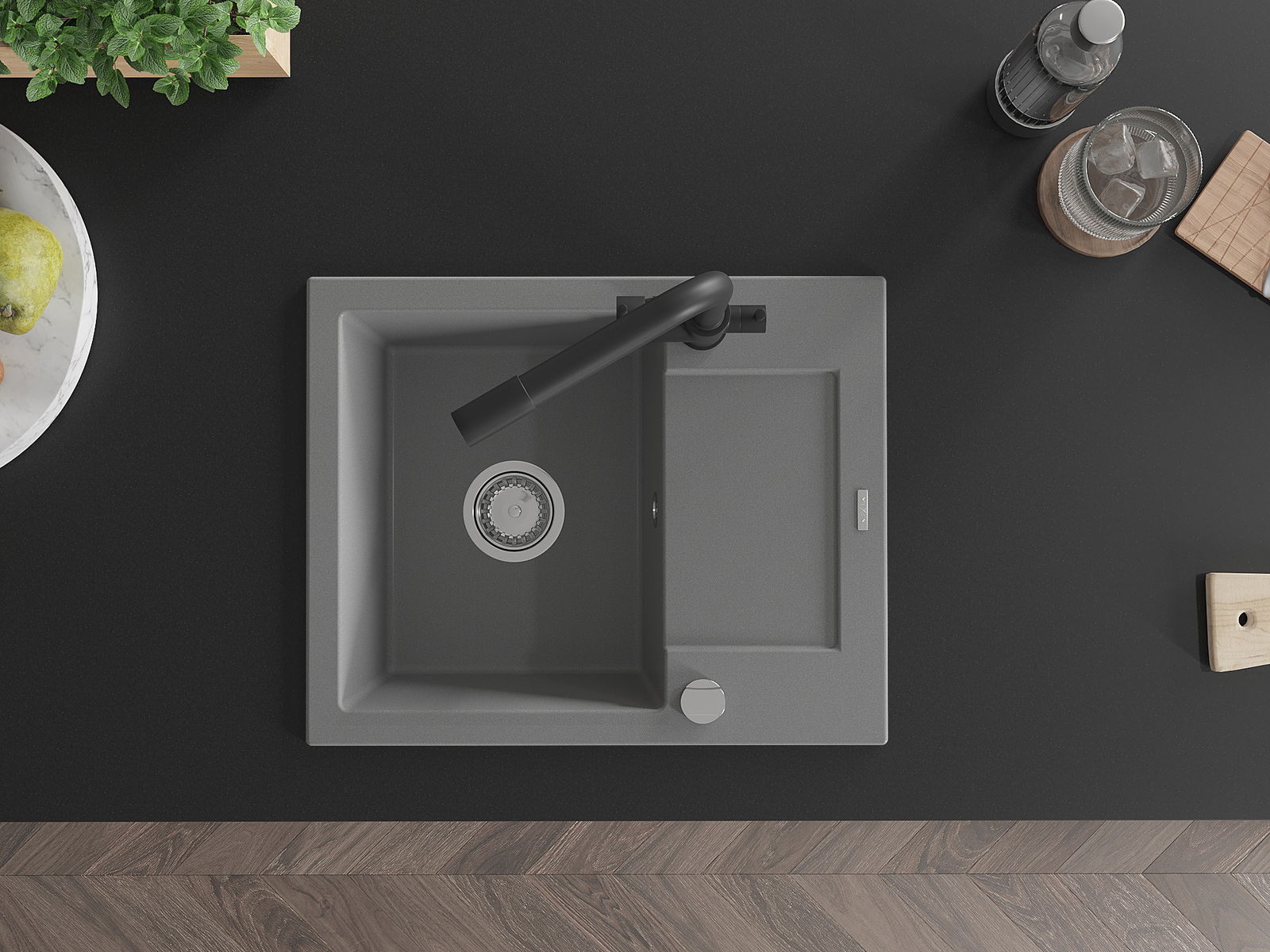 Povrch umývadla je odolný voči škvrnám a sfarbeniu, vďaka čomu sa ľahko čistí a zachováva si svoju farbu po dlhú dobu. Estetický a prakticky dopĺňajúci každú kuchyňu.