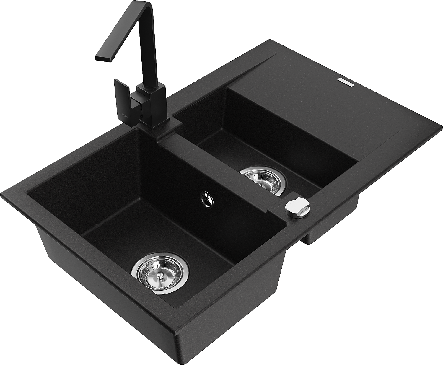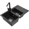 Mexen Gaspar granitový drez s 1,5 komorami, odkvapkávacou plochou a kuchynskou batériou Rita, čierny - 6507-77-670300-70