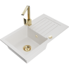 Povrch kuchynského drezu je odolný voči škvrnám a zafarbeniu, vďaka čomu sa ľahko udržiava a zachováva svoju farbu počas dlhého obdobia používania. Estetický a praktický doplnok pre každú kuchyňu.