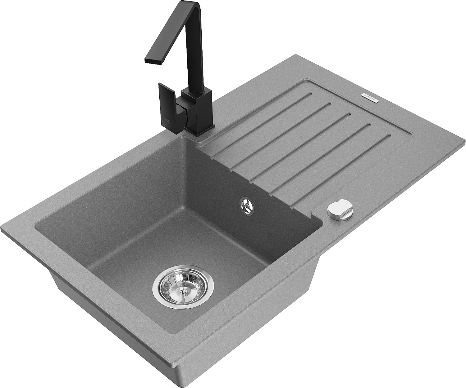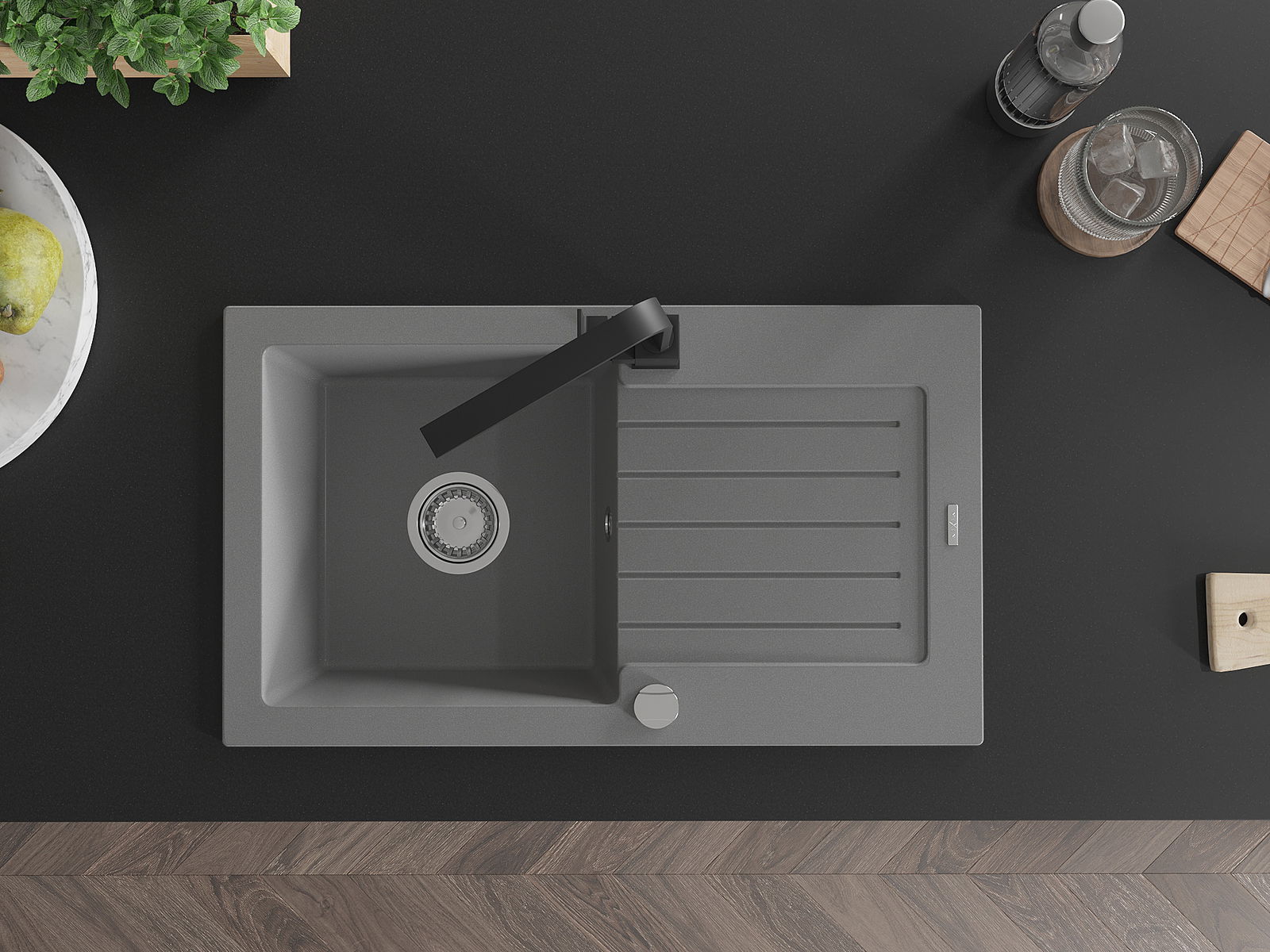 Mexen Pablo granitový drez s 1 komorou s odkvapkávačom a kuchynskou batériou Rita, sivý - 6510-71-670300-70