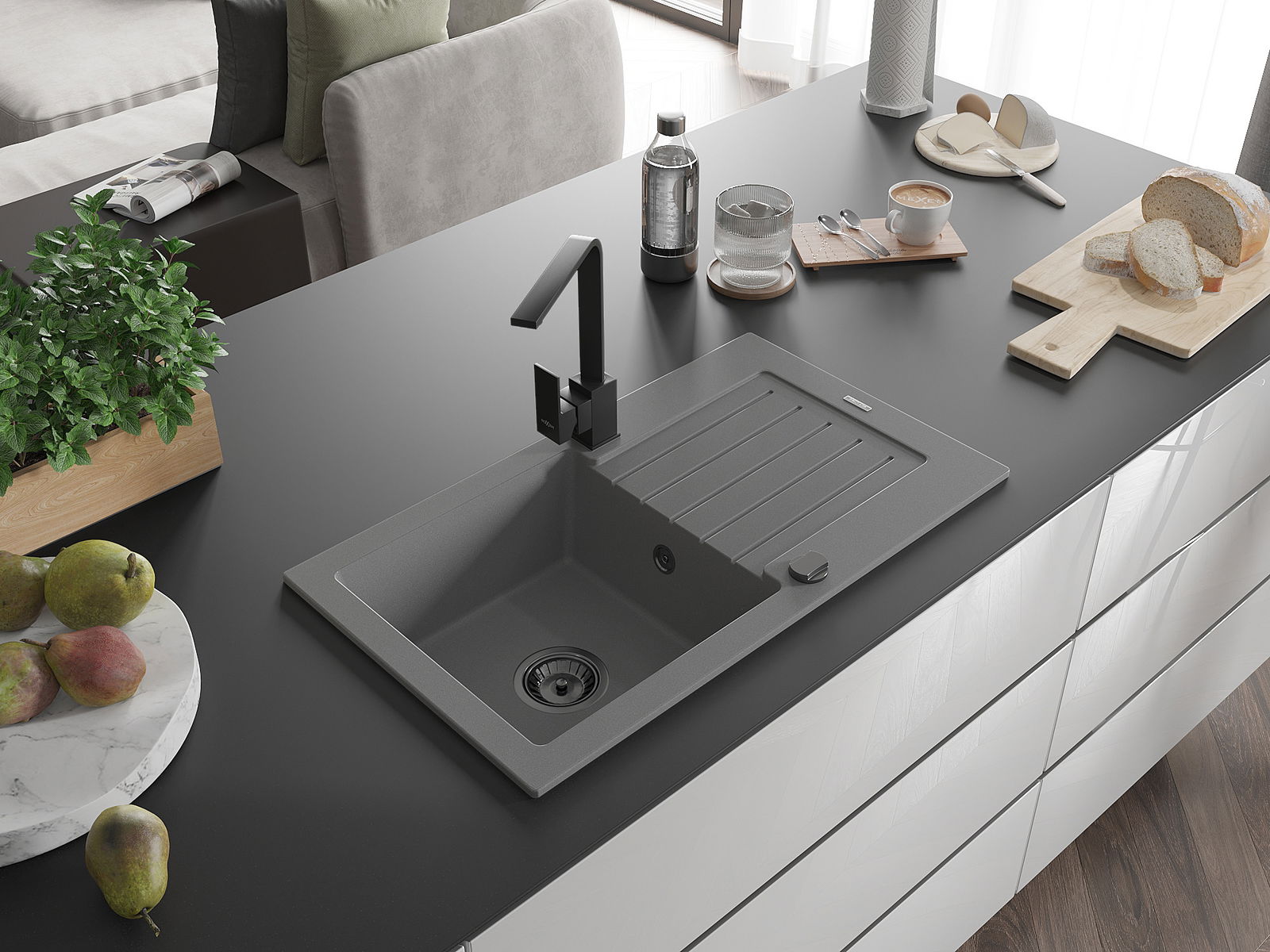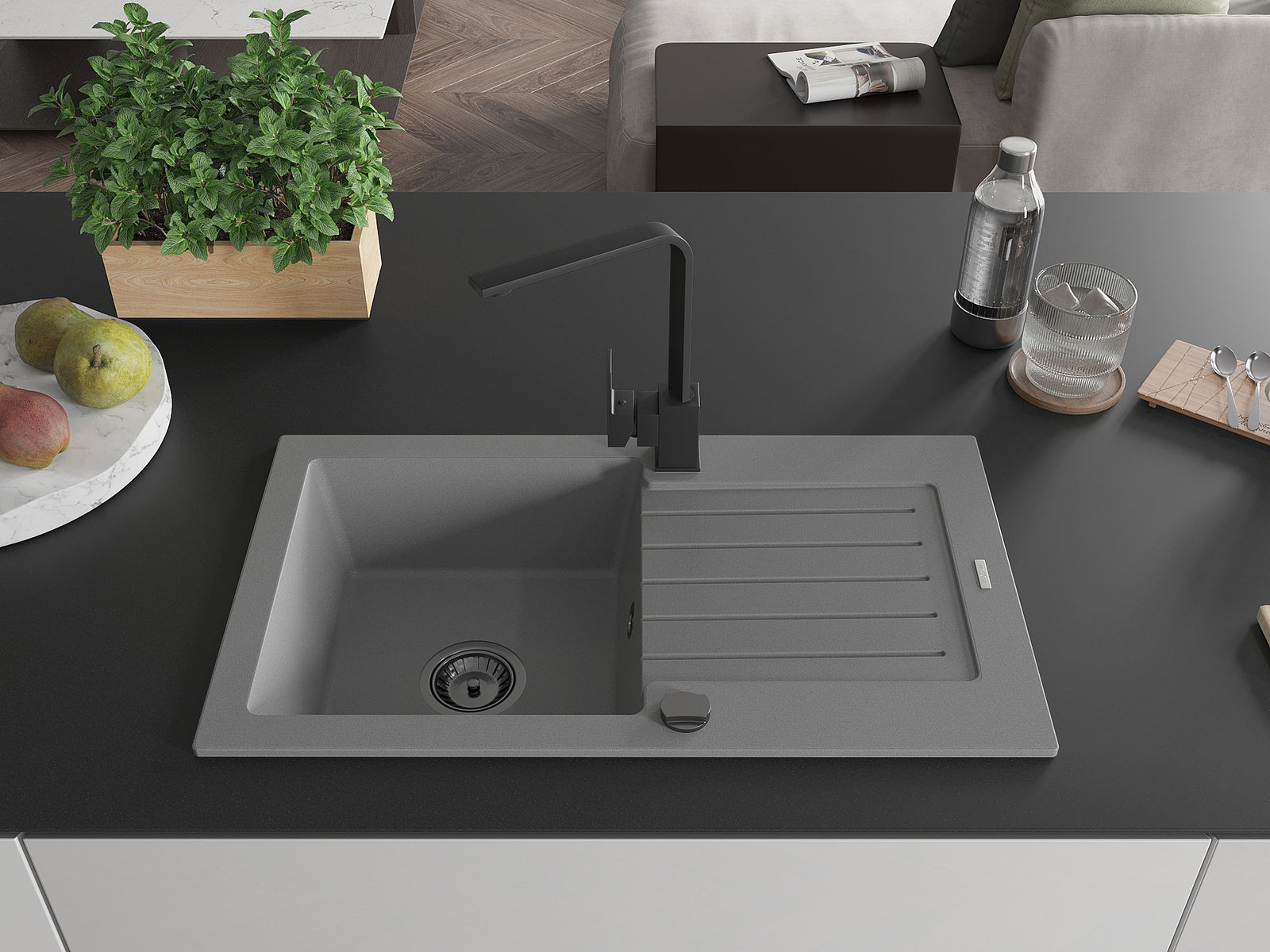Drez bol vyrobený z vysoko kvalitného granitu. Predstavuje elegantný a predovšetkým praktický doplnok každej kuchyne, nezávisle od jej štýlu. Vysoká kvalita a trvácnosť granitu zaručujú mnohoročné používanie.