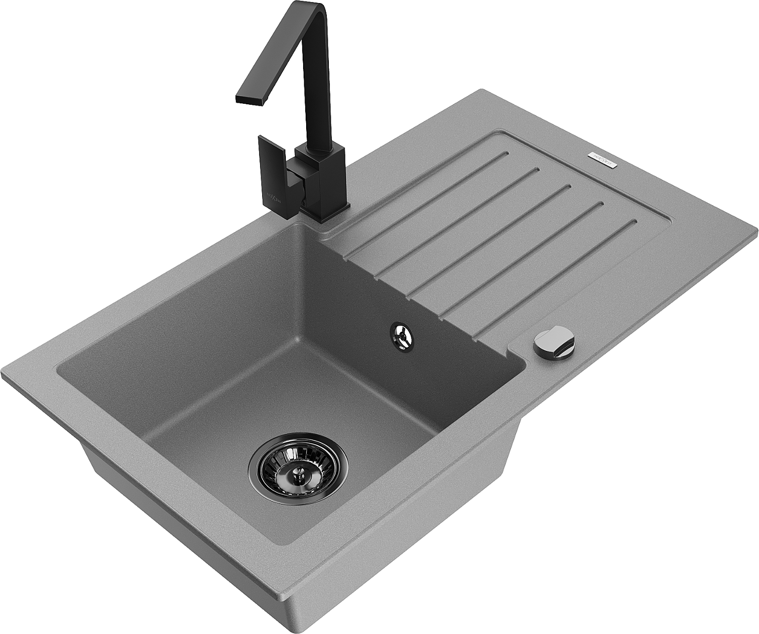 Mexen Pablo granitový drez 1-komorový s odkvapkávačom a kuchynskou batériou Rita, šedý - 6510-71-670300-70-B