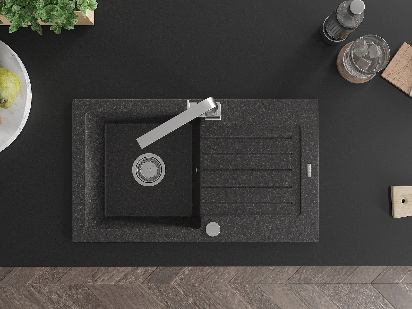 Drez bol vyrobený z vysoko kvalitného granitu. Predstavuje elegantný a predovšetkým praktický doplnok každej kuchyne, nezávisle od jej štýlu. Vysoká kvalita a trvácnosť granitu zaručujú mnohoročné používanie.