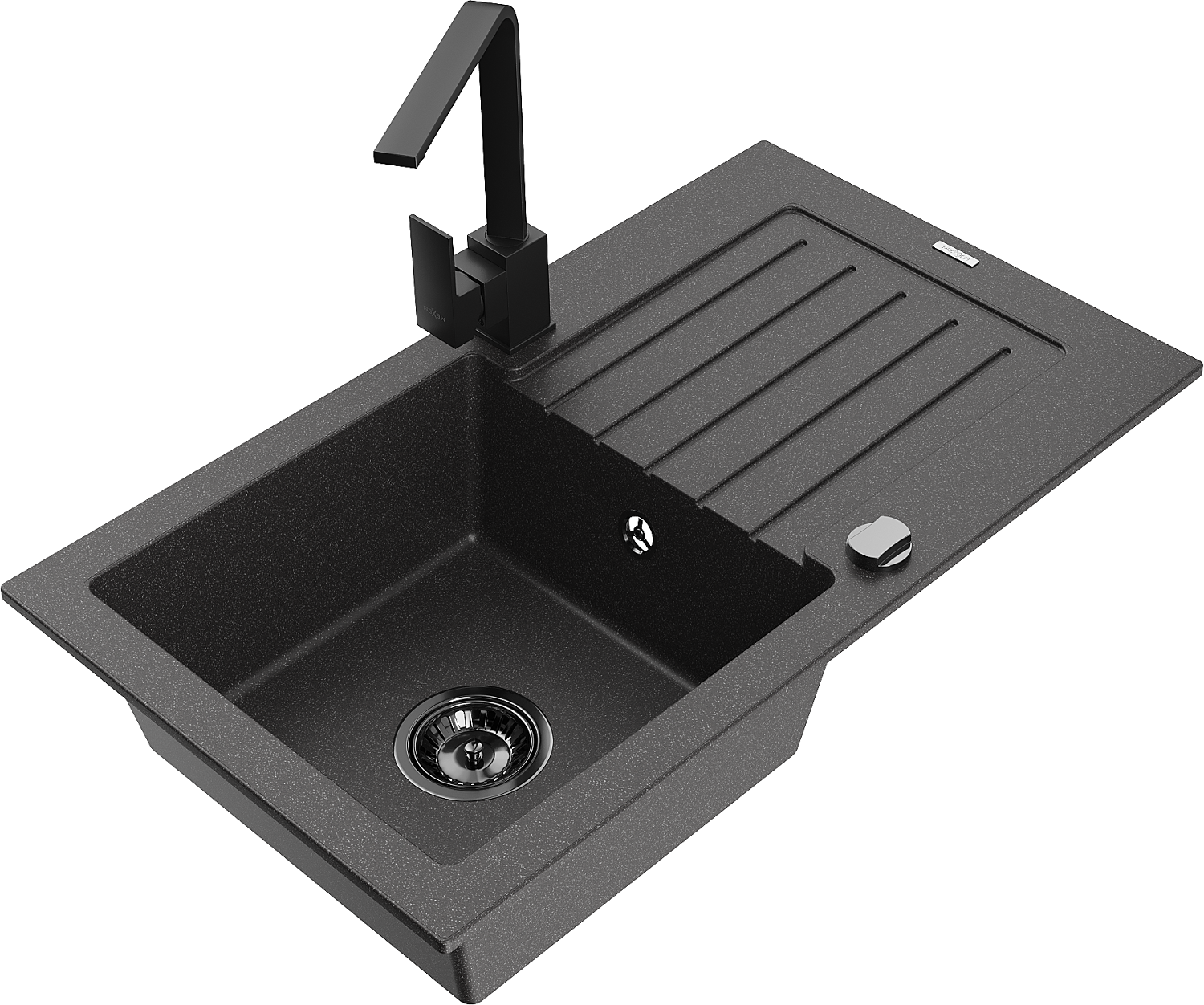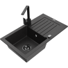 Mexen Pablo žulový drez s 1 komorou a odkvapkávačom, s kuchynskou batériou Rita, čierny s bodkami- 6510-76-670300-70-B