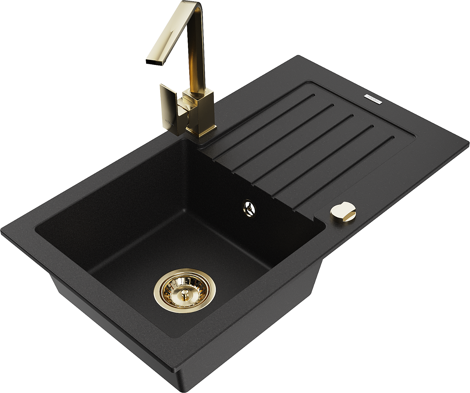 Mexen Pablo granitový kuchynský drez 1-komorový s odkvapkávačom a kuchynskou batériou Rita, čierny - 6510-77-670300-50