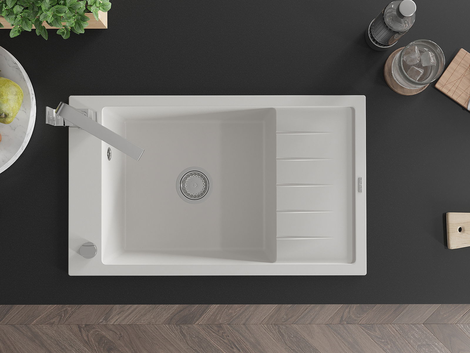 Povrch umývadla je odolný voči škvrnám a sfarbeniu, vďaka čomu sa ľahko čistí a zachováva si svoju farbu po dlhú dobu. Estetický a prakticky dopĺňajúci každú kuchyňu.