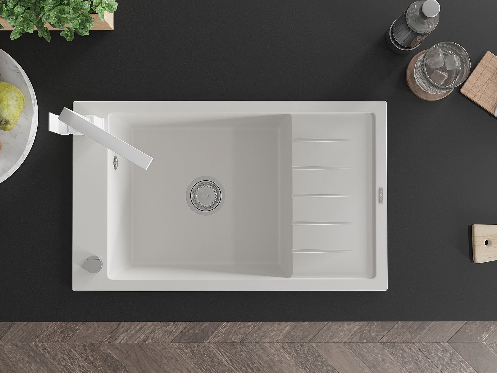 Povrch umývadla je odolný voči škvrnám a sfarbeniu, vďaka čomu sa ľahko čistí a zachováva si svoju farbu po dlhú dobu. Estetický a prakticky dopĺňajúci každú kuchyňu.