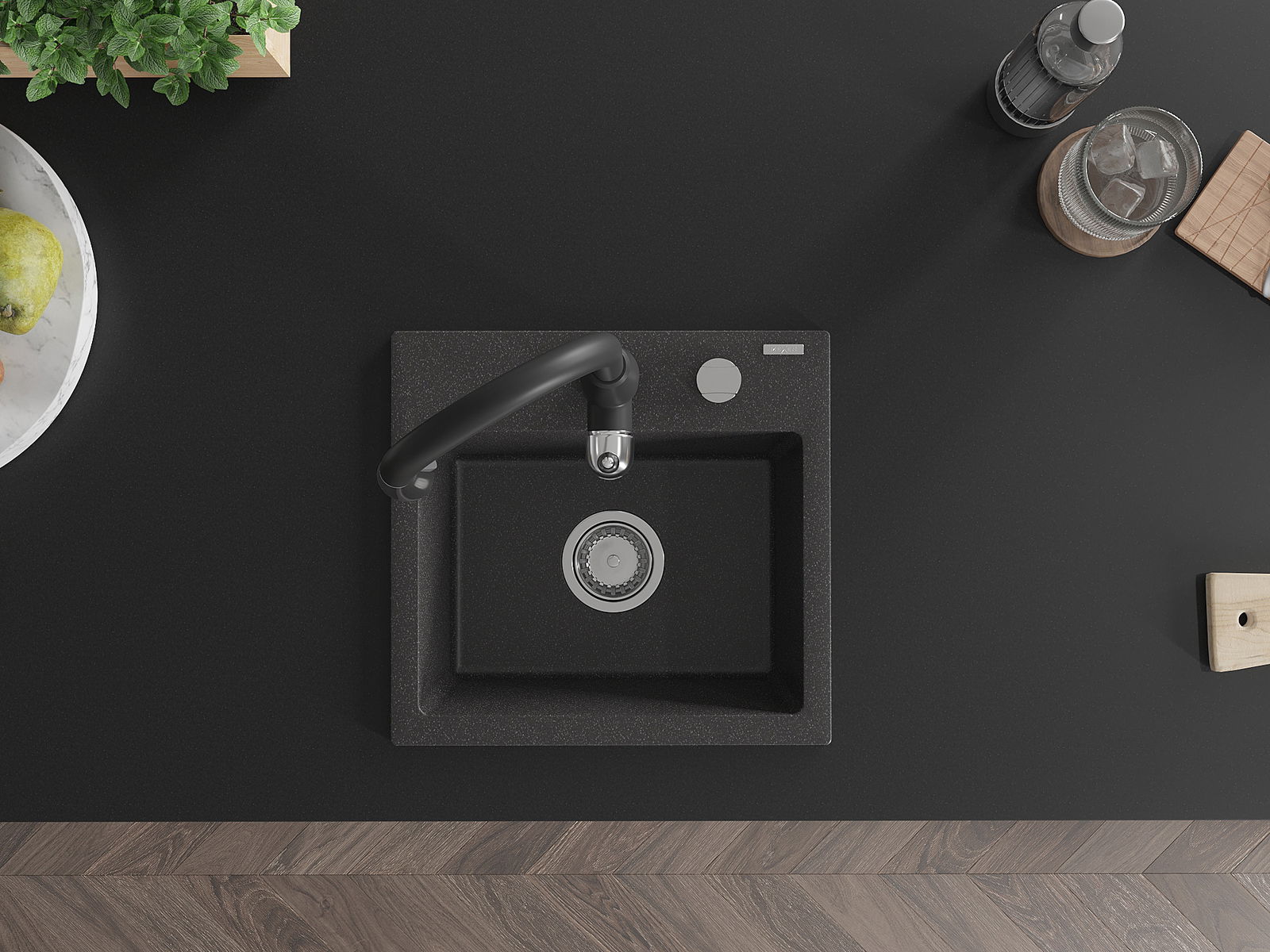 Povrch umývadla je odolný voči škvrnám a sfarbeniu, vďaka čomu sa ľahko čistí a zachováva si svoju farbu po dlhú dobu. Estetický a prakticky dopĺňajúci každú kuchyňu.