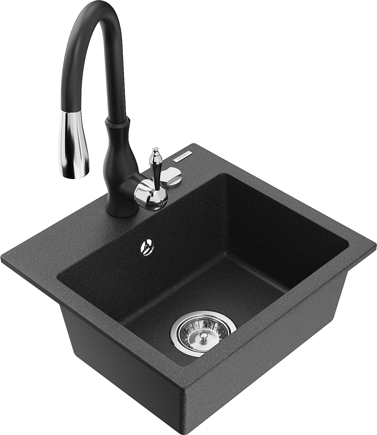 Mexen Milo granitový drez 1-komorový s kuchynskou batériou Savita, čierny bodkovaný - 6505-76-672601-70