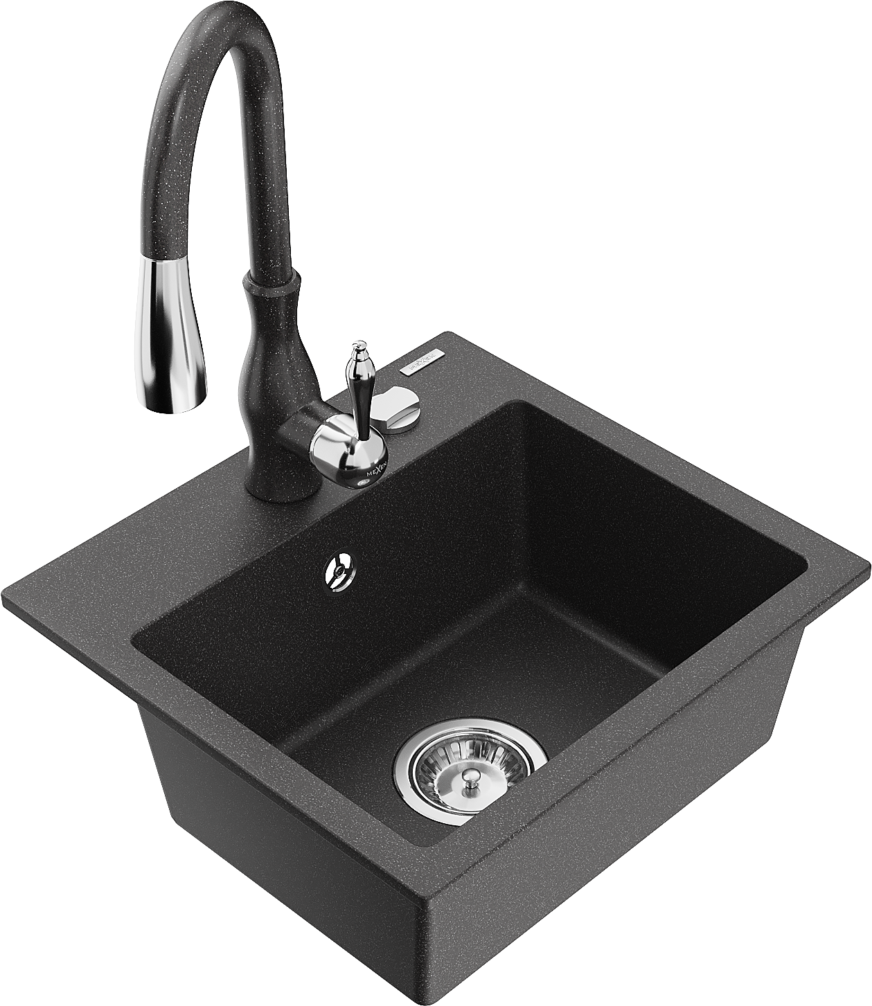 Mexen Milo granitový drez 1-komorový s kuchynskou batériou Savita, čierny so škvrnami - 6505-76-672601-76