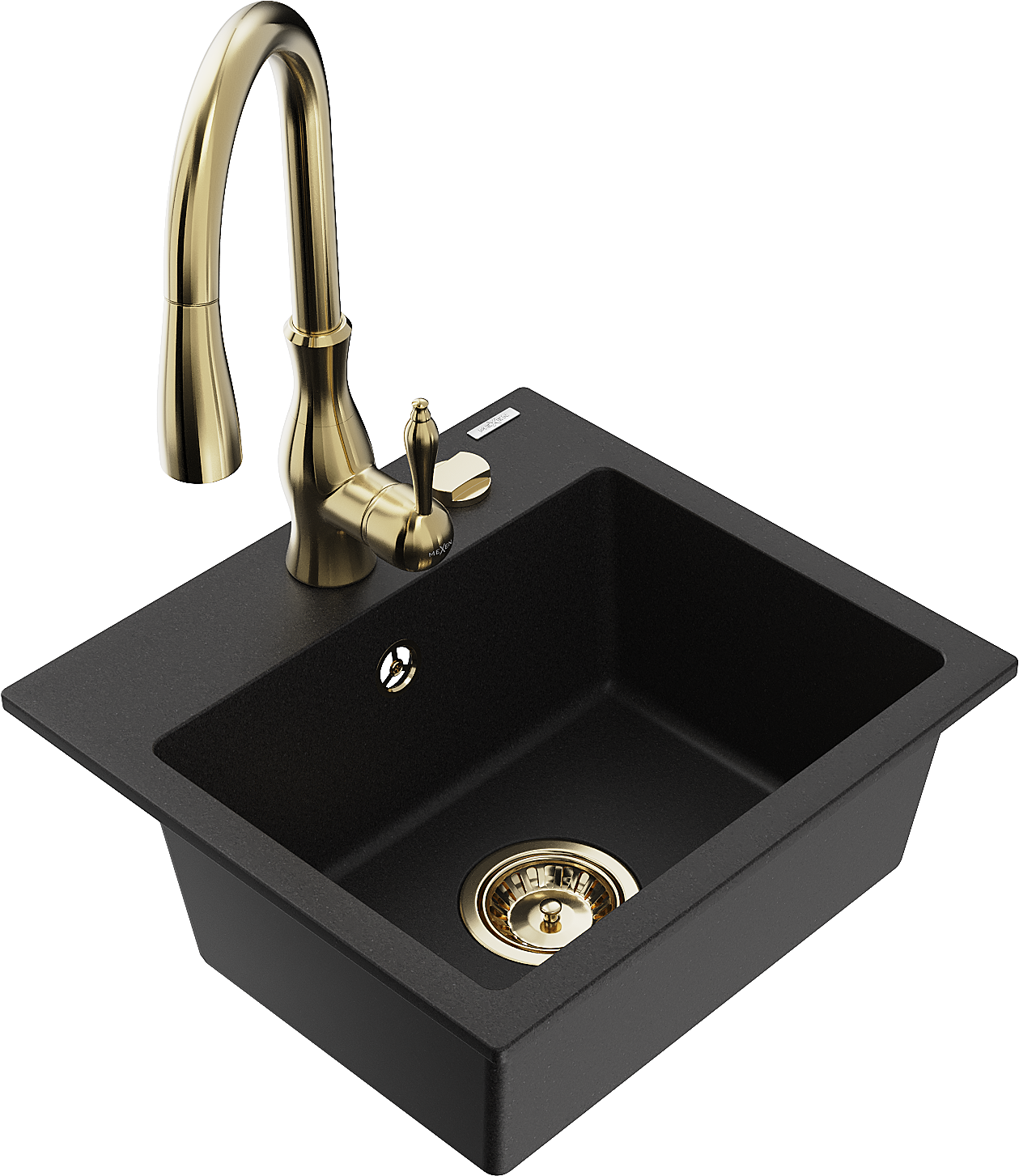 Mexen Milo žulový jednokomorový drez s kuchynskou batériou Savita, čierny - 6505-77-672601-50
