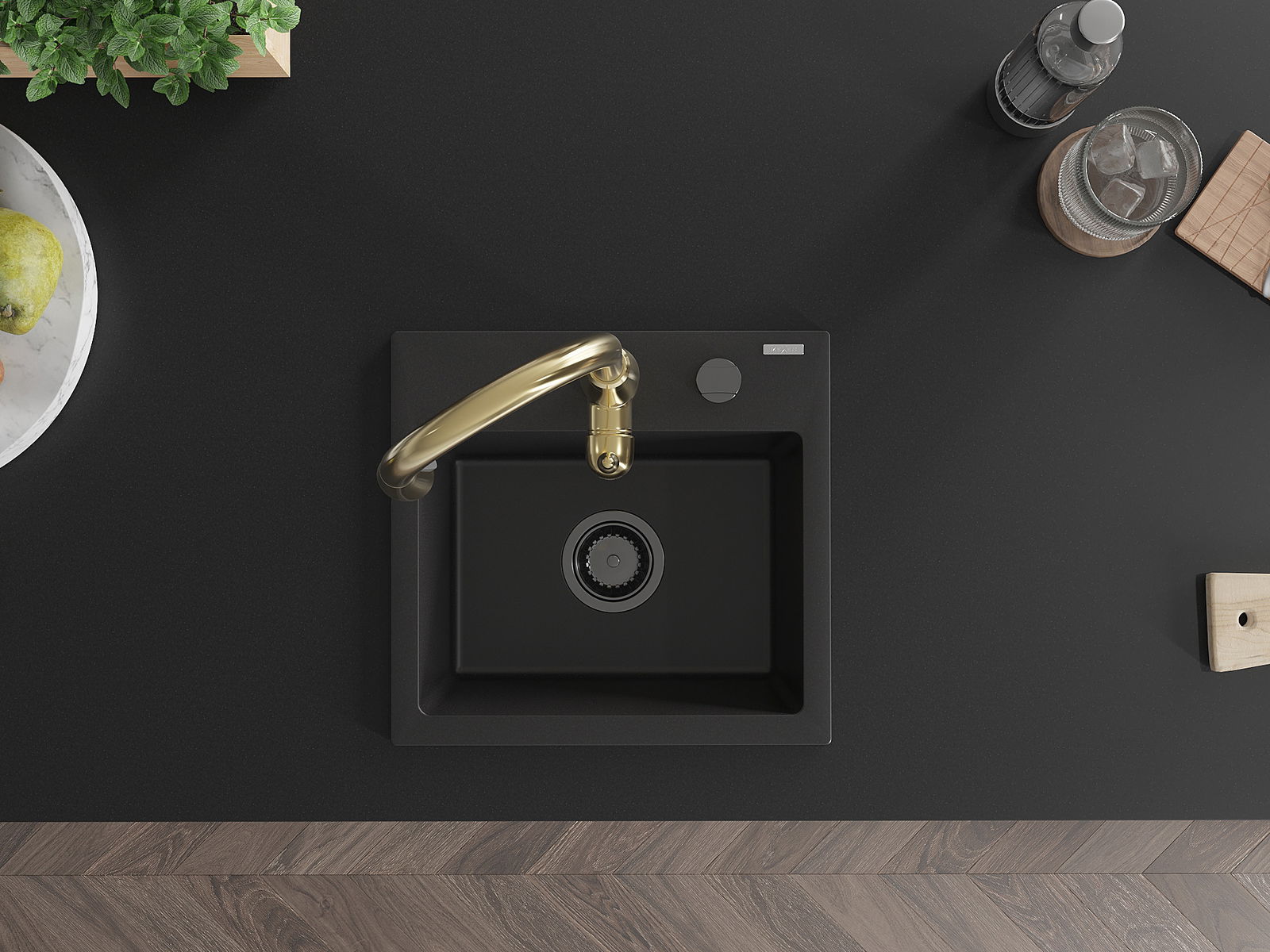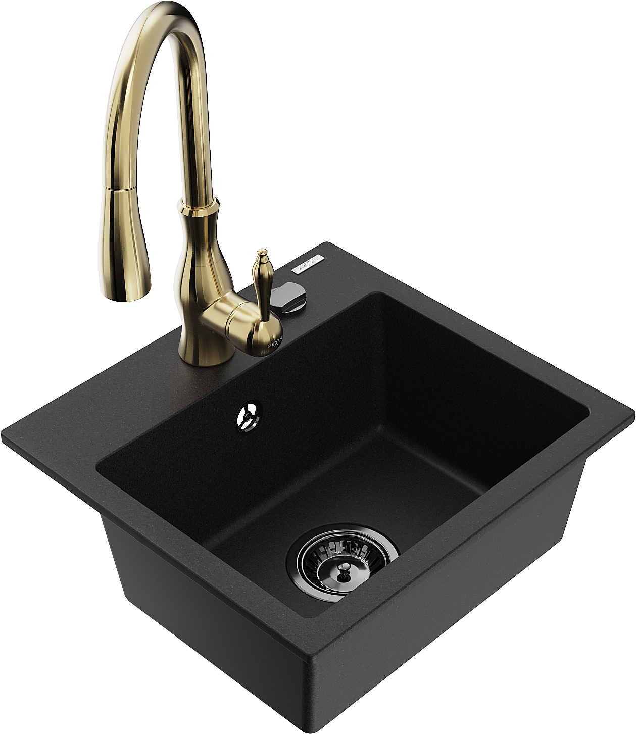 Mexen Milo granitový kuchynský drez 1-komorový s kuchynskou batériou Savita, čierny - 6505-77-672601-50-B