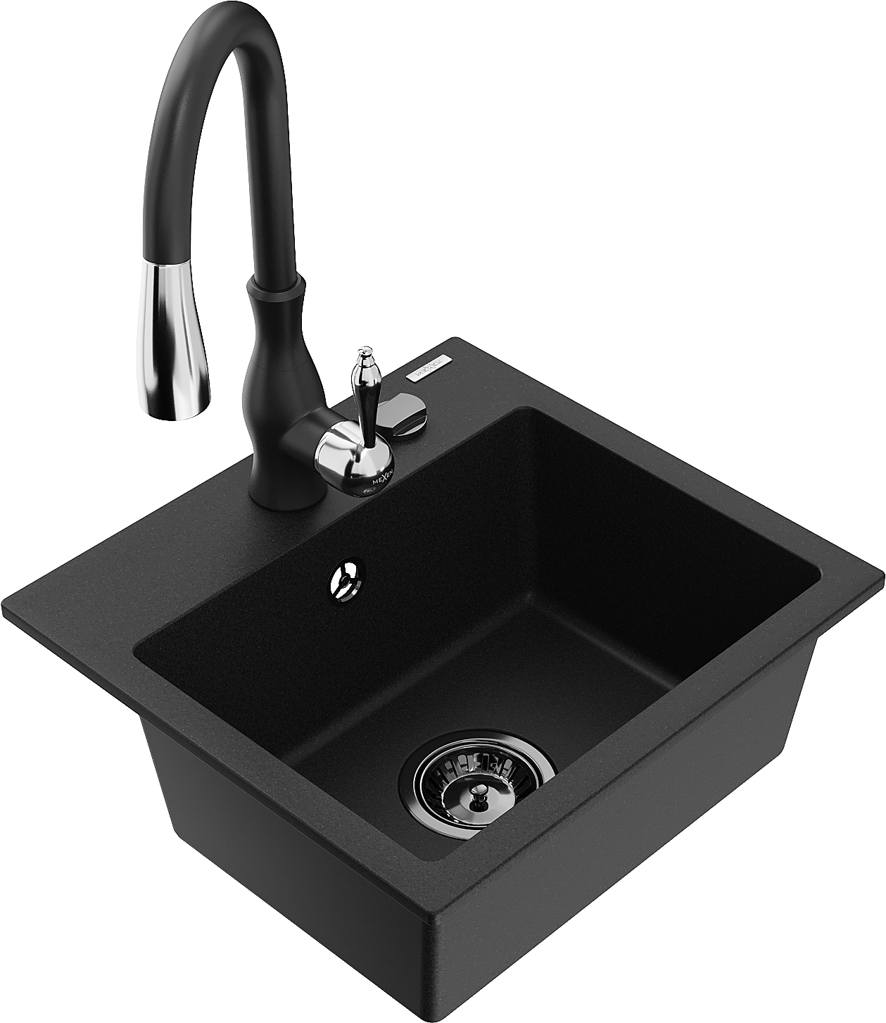 Mexen Milo žulový drez 1-komorový s kuchynskou batériou Savita, čierny - 6505-77-672601-70-B