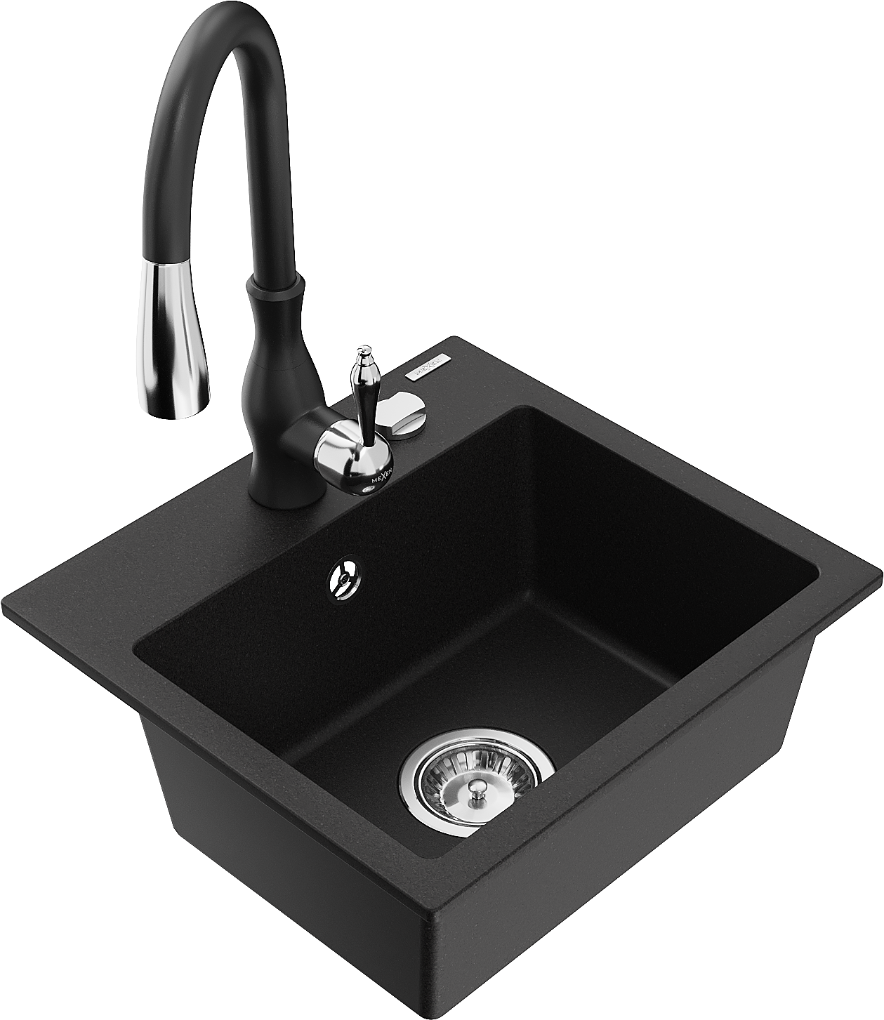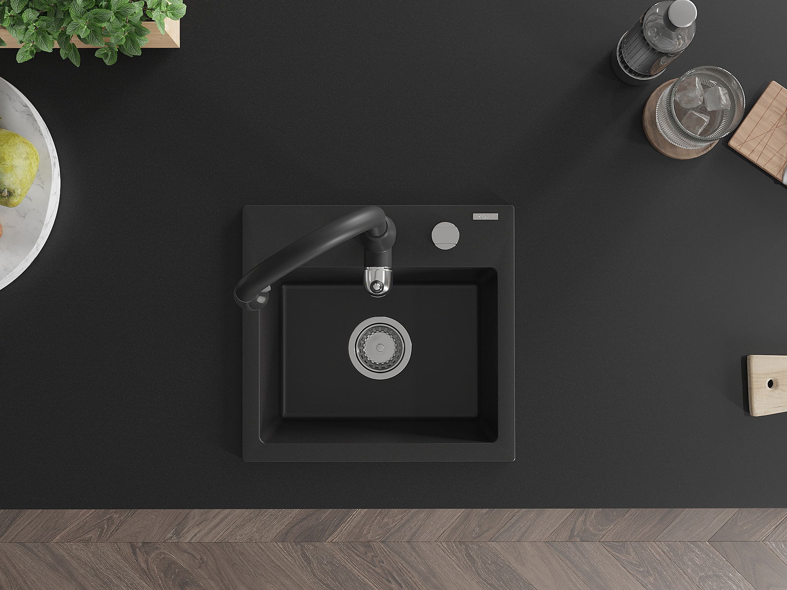 Mexen Milo granitový jednokomorový drez s kuchynskou batériou Savita, čierny - 6505-77-672601-70