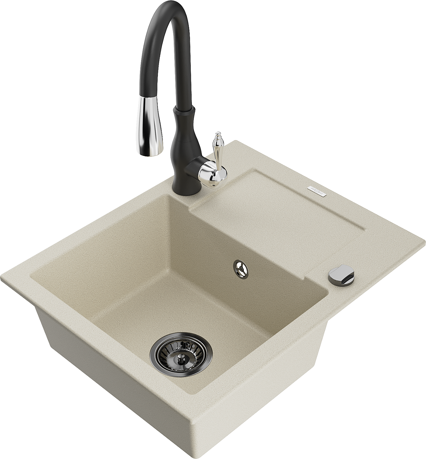 Mexen Enzo granitový drez 1-komorový s odkvapkávačom a kuchynskou batériou Savita, béžový - 6506-69-672601-70
