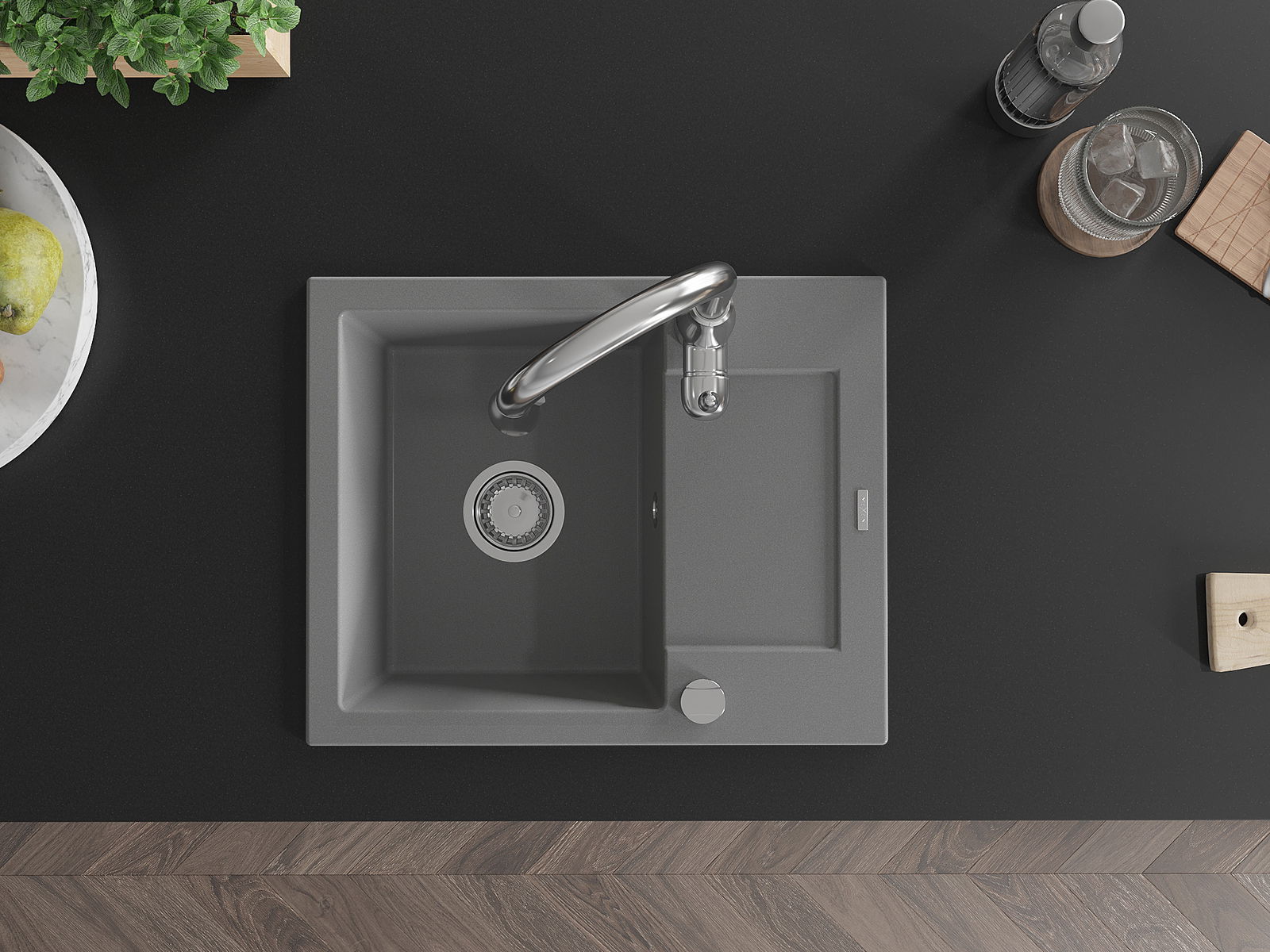 Povrch umývadla je odolný voči škvrnám a sfarbeniu, vďaka čomu sa ľahko čistí a zachováva si svoju farbu po dlhú dobu. Estetický a prakticky dopĺňajúci každú kuchyňu.