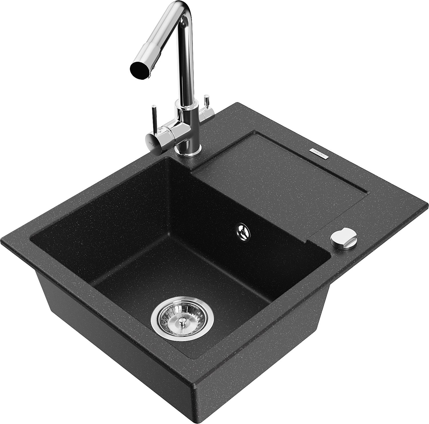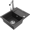 Mexen Enzo granitový drez 1-komorový s odkvapkávačom a kuchynskou batériou Duero, čierny/strieborný metalik