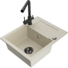 Povrch kuchynského drezu je odolný voči škvrnám a zafarbeniu, vďaka čomu sa ľahko udržiava a zachováva svoju farbu počas dlhého obdobia používania. Estetický a praktický doplnok pre každú kuchyňu.