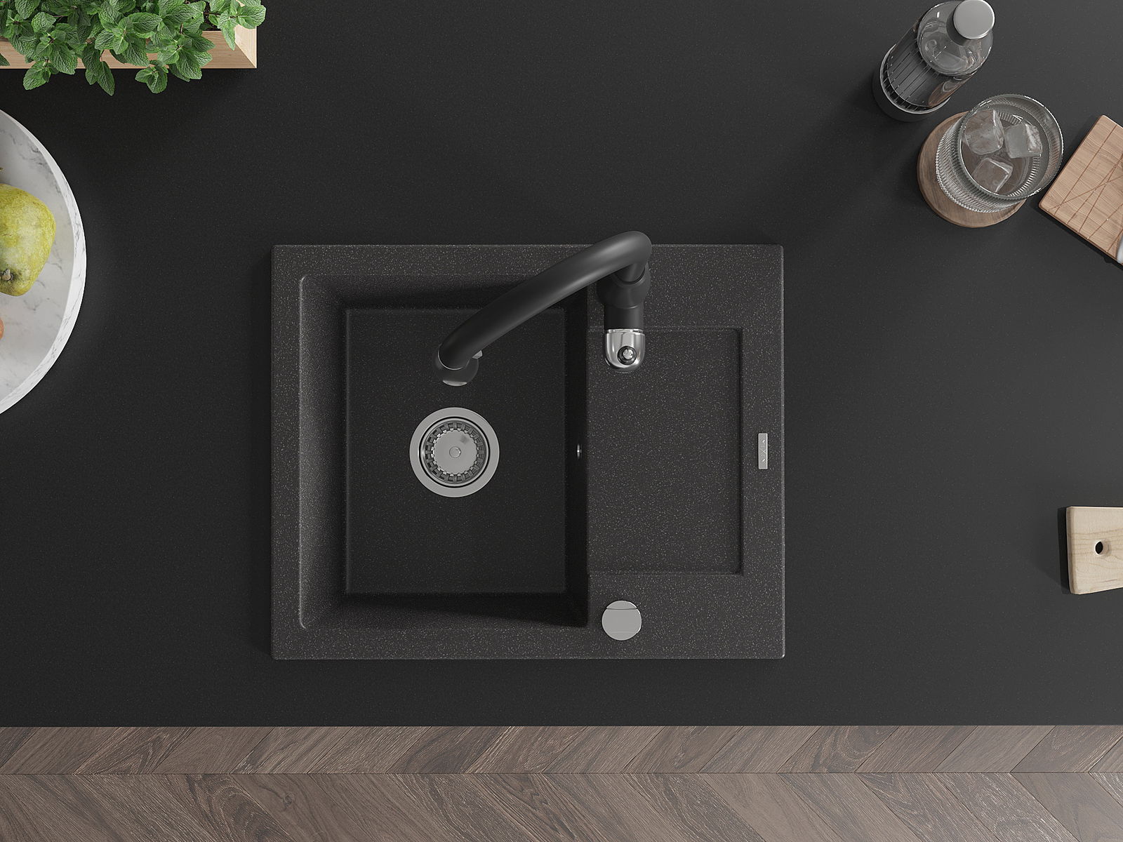 Povrch umývadla je odolný voči škvrnám a sfarbeniu, vďaka čomu sa ľahko čistí a zachováva si svoju farbu po dlhú dobu. Estetický a prakticky dopĺňajúci každú kuchyňu.