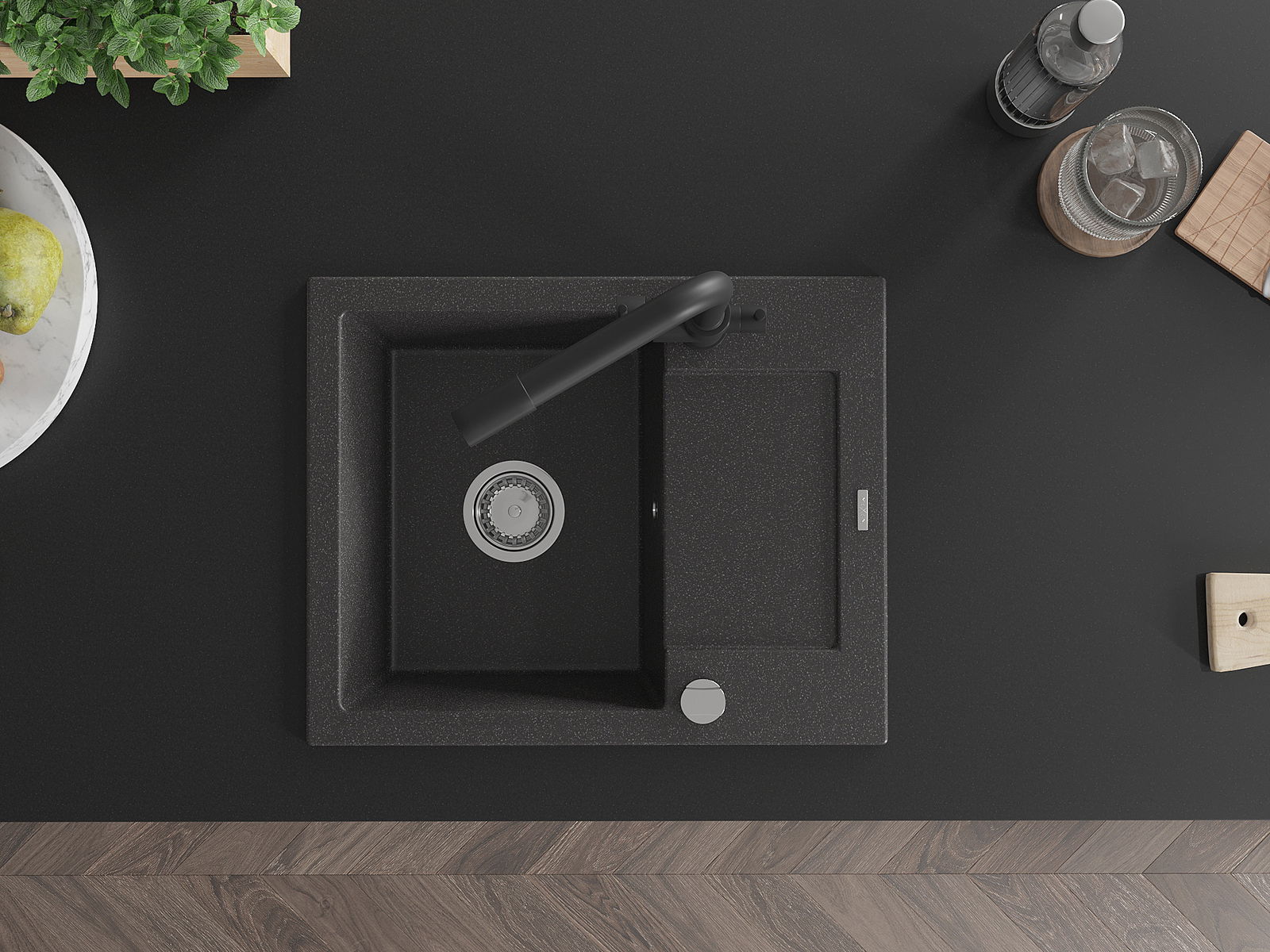 Mexen Enzo jednodrezový granitový drez s odkvapkávačom a kuchynskou batériou Duero, čierno škvrnitý - 6506-76-671600-70