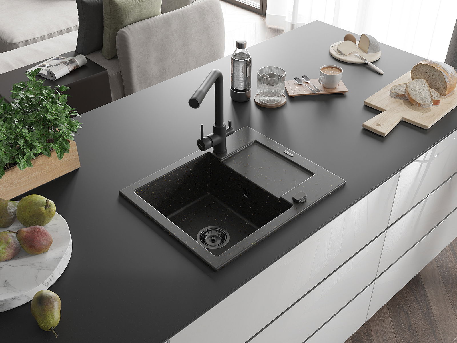 Povrch umývadla je odolný voči škvrnám a sfarbeniu, vďaka čomu sa ľahko čistí a zachováva si svoju farbu po dlhú dobu. Estetický a prakticky dopĺňajúci každú kuchyňu.