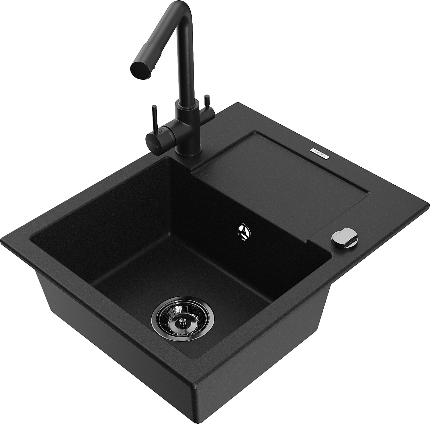 Mexen Enzo granitový drez s jednou komorou a odkvapkávacou plochou s kuchynskou batériou Duero, čierny - 6506-77-671600-70-B
