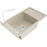 Povrch kuchynského drezu je odolný voči škvrnám a zafarbeniu, vďaka čomu sa ľahko udržiava a zachováva svoju farbu počas dlhého obdobia používania. Estetický a praktický doplnok pre každú kuchyňu.
