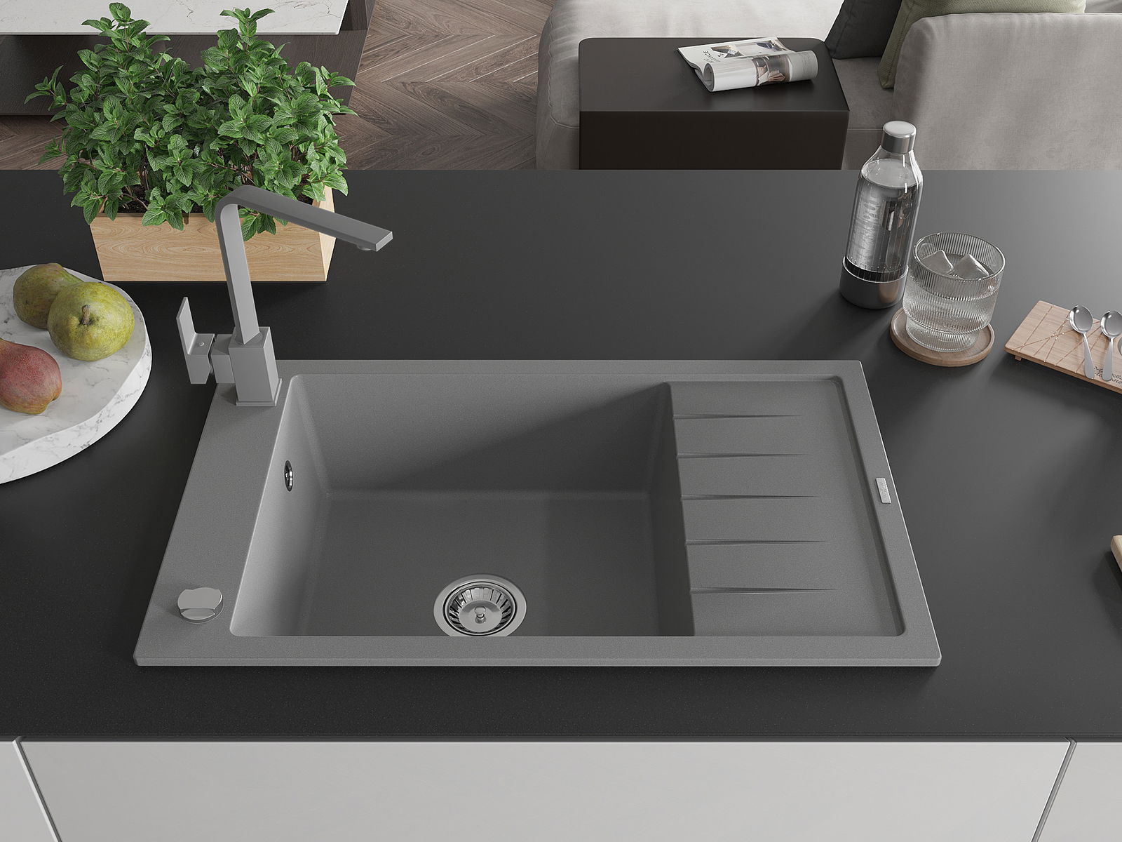 Drez bol vyrobený z vysoko kvalitného granitu. Predstavuje elegantný a predovšetkým praktický doplnok každej kuchyne, nezávisle od jej štýlu. Vysoká kvalita a trvácnosť granitu zaručujú mnohoročné používanie.