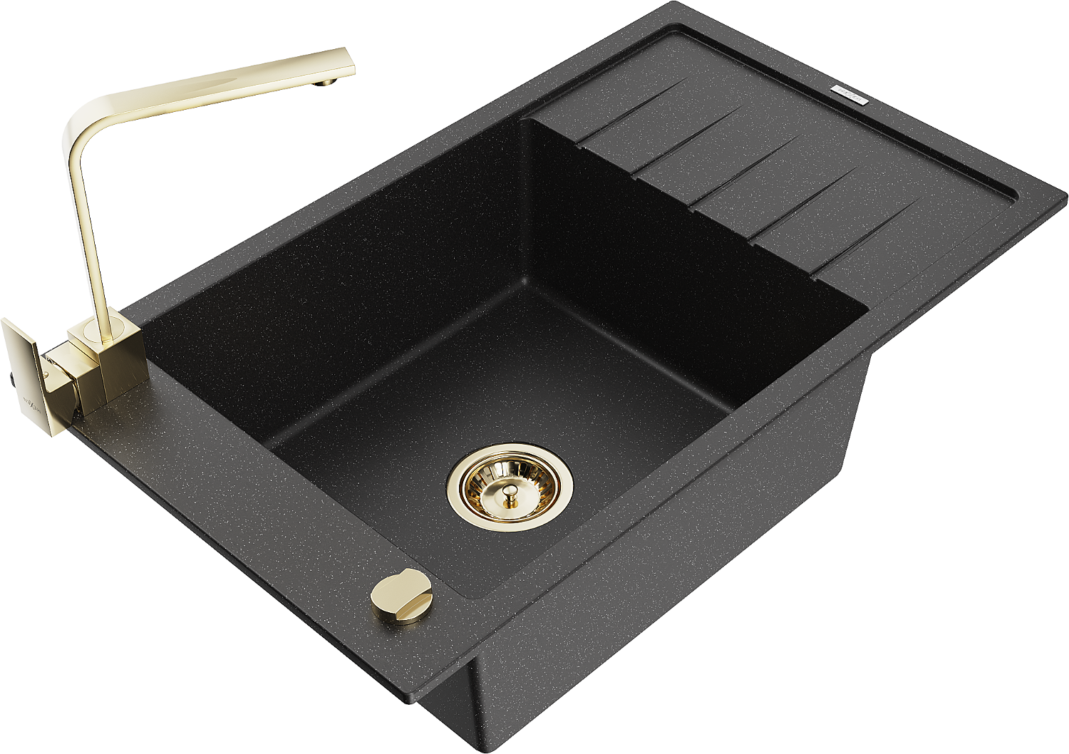 Mexen Elias granitový kuchynský drez 1-komorový s odkvapkávačom a kuchynskou batériou Rita, čierny/strieborný metalik - 6511-73?