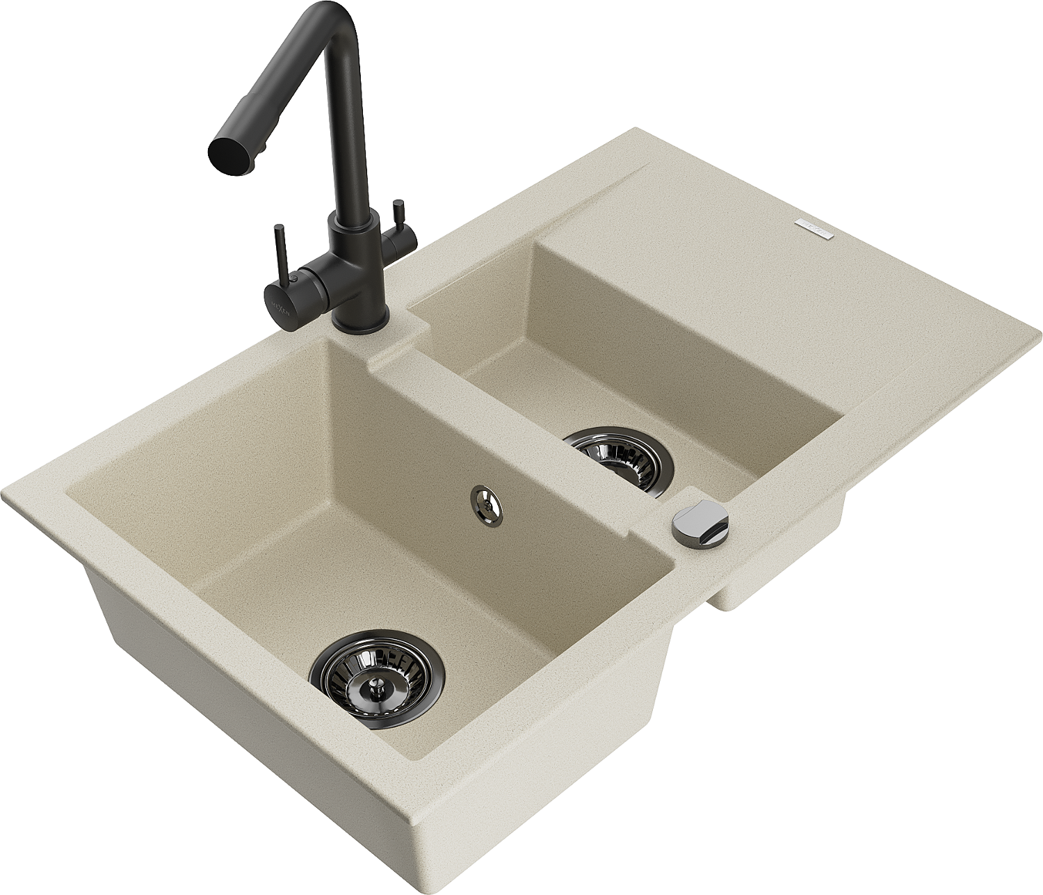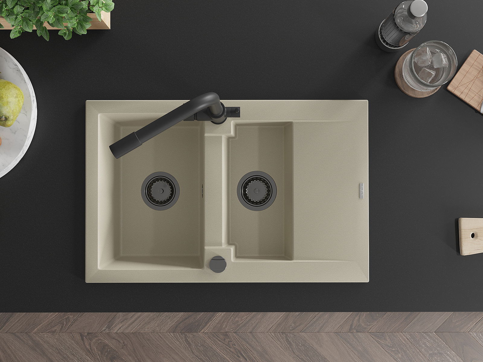 Mexen Gaspar žulový drez 1,5-komorový s odkvapkávačom a kuchynskou batériou Duero, béžový - 6507-69-671600-70