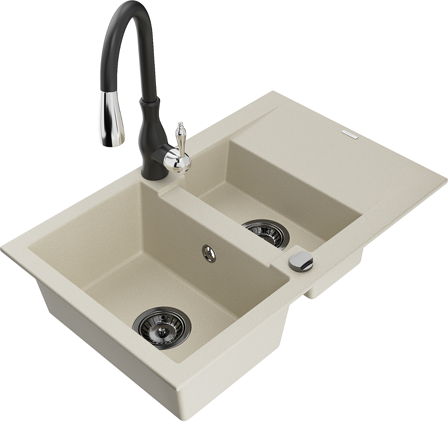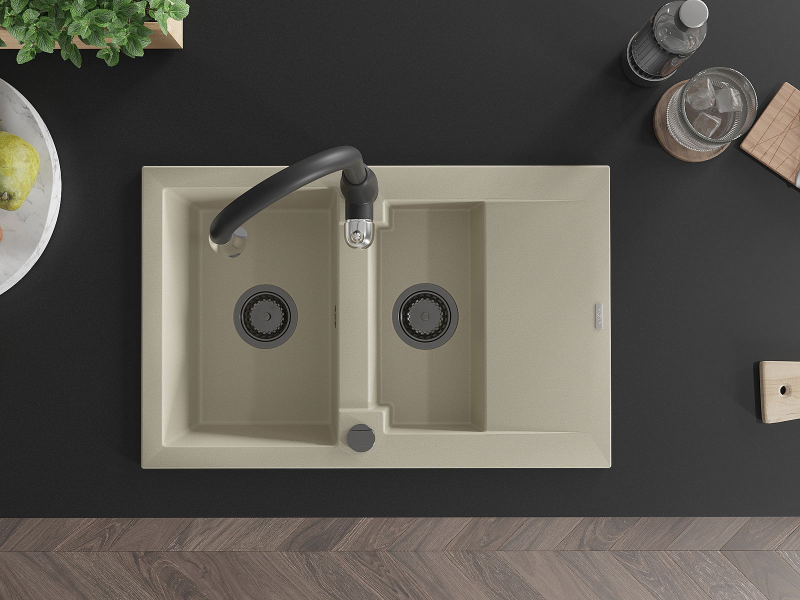 Mexen Gaspar granitový drez s 1,5 komorou a odkvapkávačom a kuchynskou batériou Savita, béžový - 6507-69-672601-70