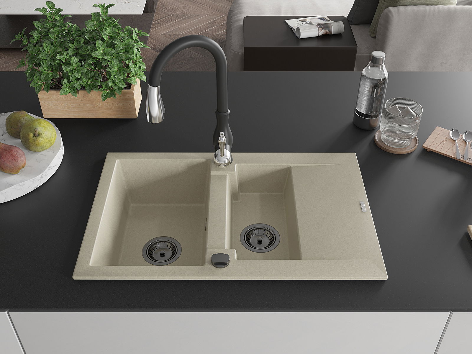 Povrch umývadla je odolný voči škvrnám a sfarbeniu, vďaka čomu sa ľahko čistí a zachováva si svoju farbu po dlhú dobu. Estetický a prakticky dopĺňajúci každú kuchyňu.
