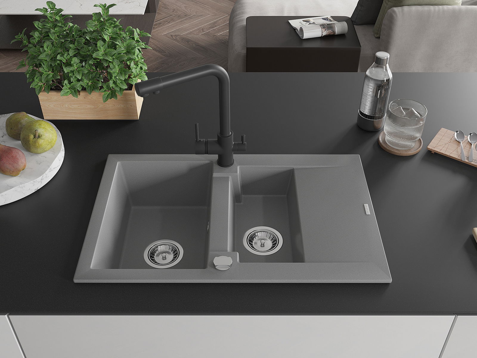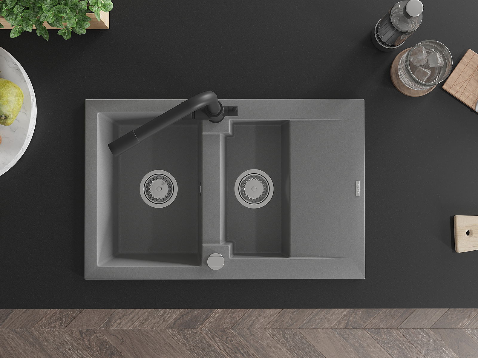 Povrch umývadla je odolný voči škvrnám a sfarbeniu, vďaka čomu sa ľahko čistí a zachováva si svoju farbu po dlhú dobu. Estetický a prakticky dopĺňajúci každú kuchyňu.