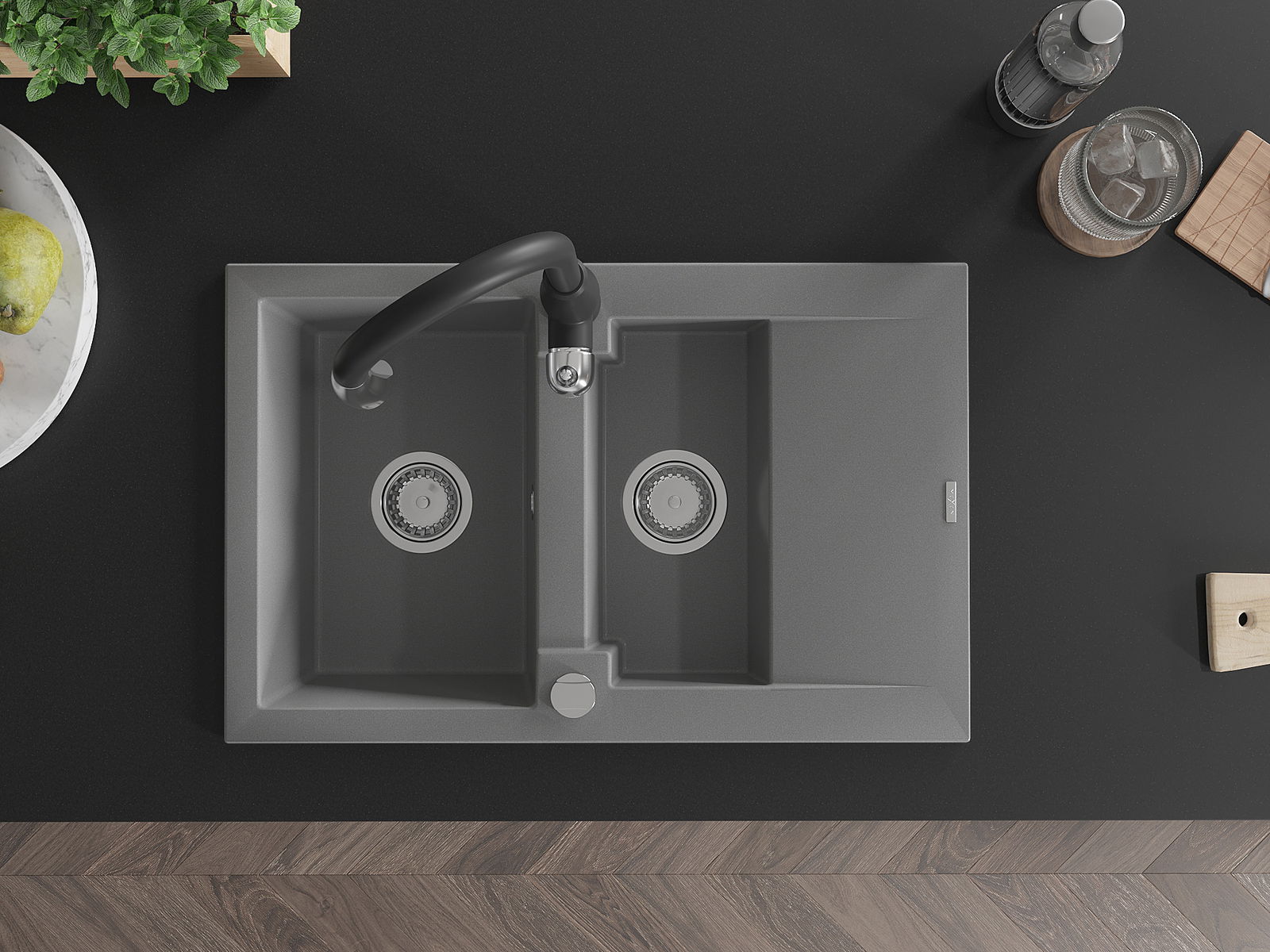 Povrch umývadla je odolný voči škvrnám a sfarbeniu, vďaka čomu sa ľahko čistí a zachováva si svoju farbu po dlhú dobu. Estetický a prakticky dopĺňajúci každú kuchyňu.