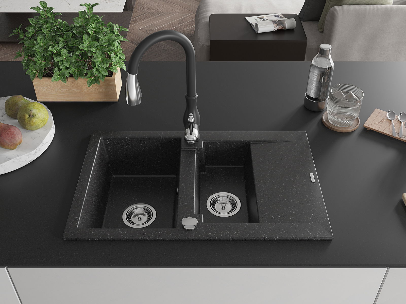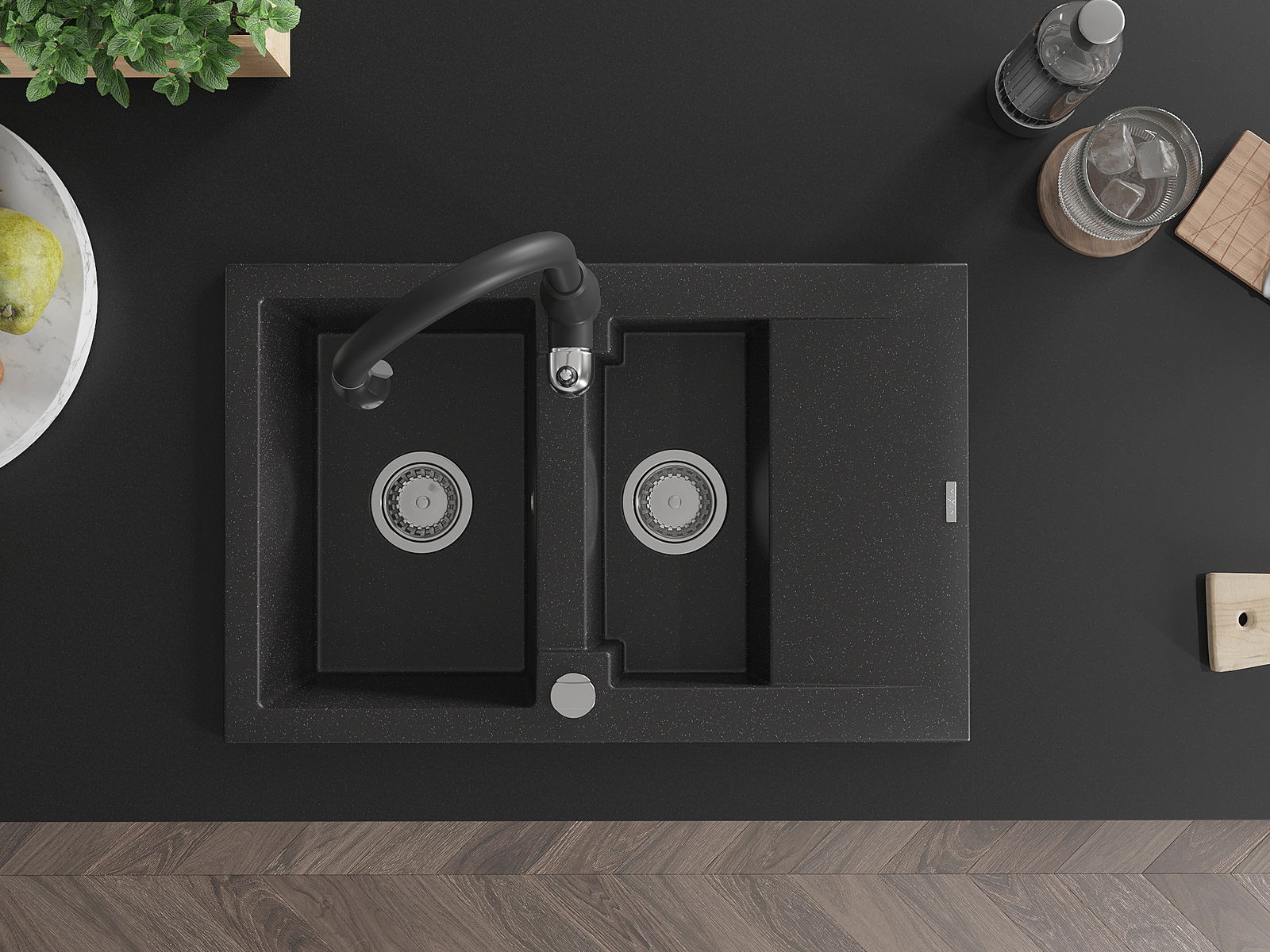 Povrch umývadla je odolný voči škvrnám a sfarbeniu, vďaka čomu sa ľahko čistí a zachováva si svoju farbu po dlhú dobu. Estetický a prakticky dopĺňajúci každú kuchyňu.