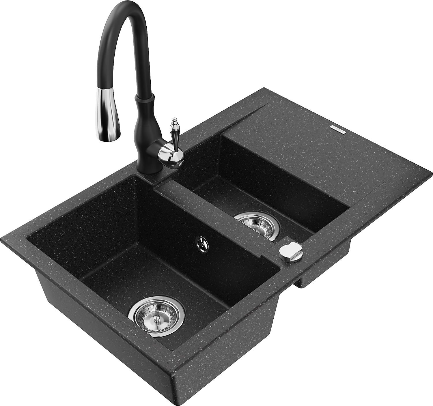 Mexen Gaspar granitový drez s odkvapkávačom a kuchynskou batériou Savita, čierna/strieborná - 6507-73-672601-70