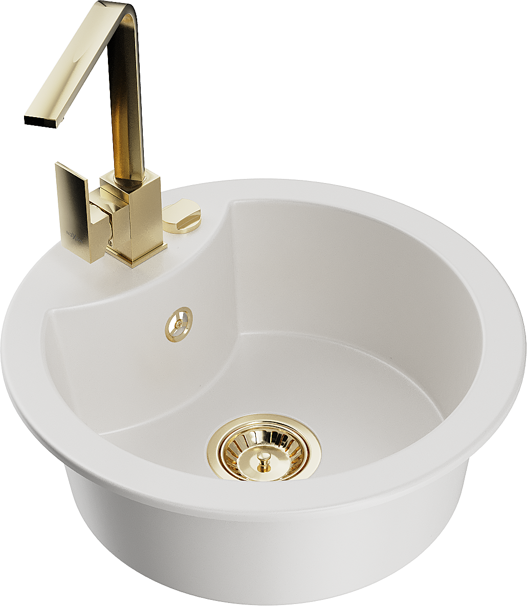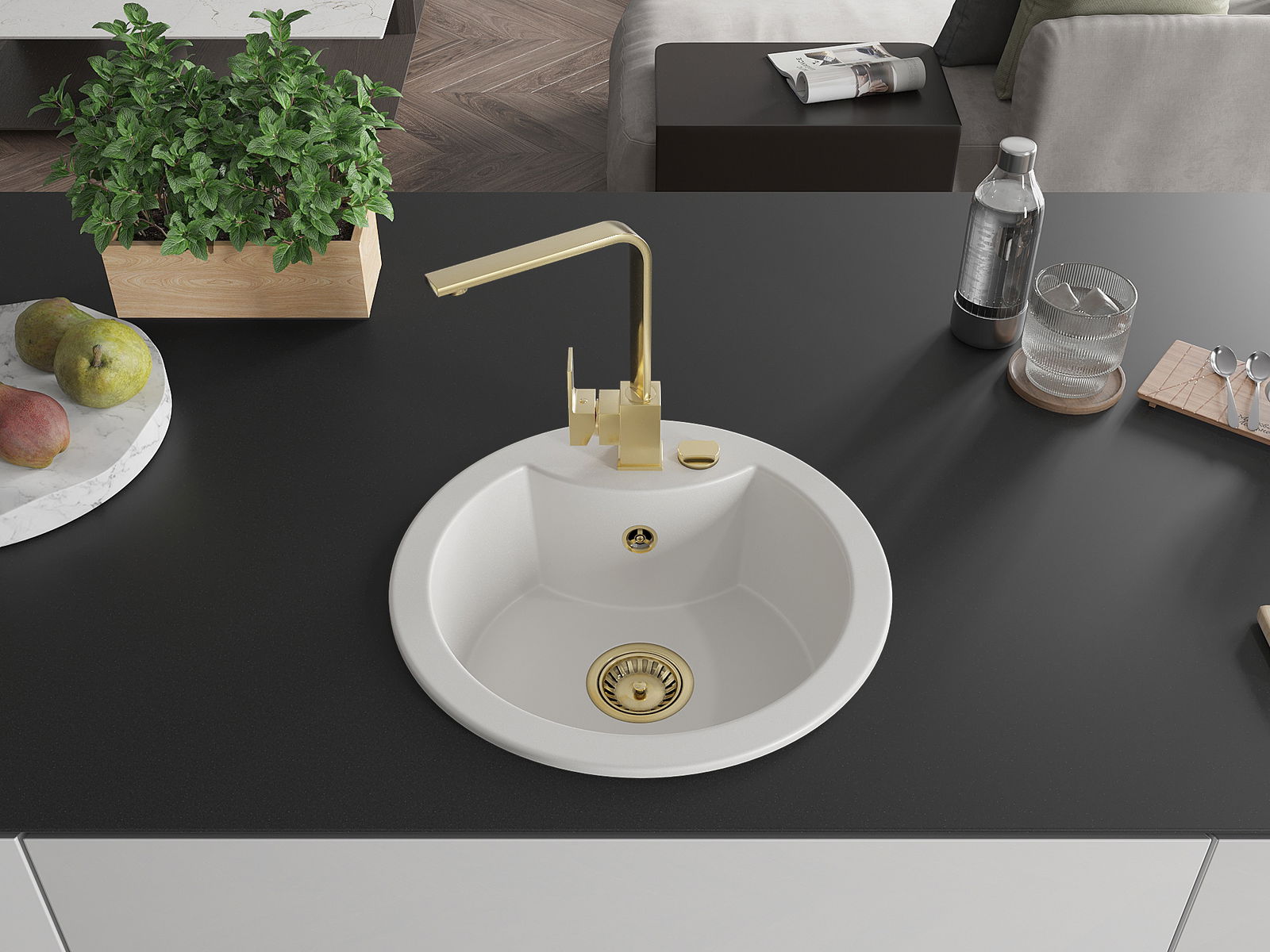 Mexen Diego granitový drez 1-komorový s kuchynskou batériou Rita, biely - 6512-20-670300-50