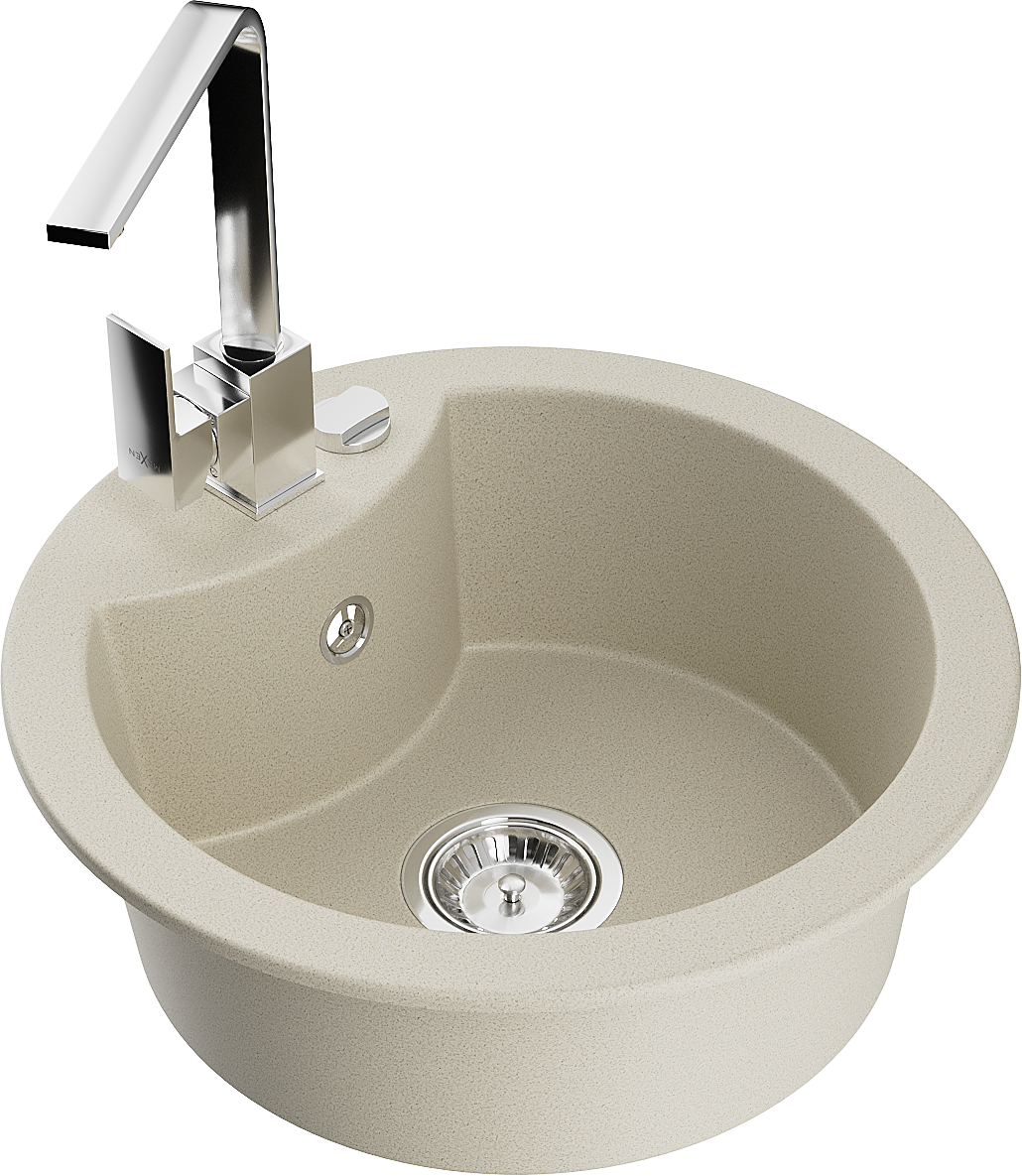 Mexen Diego žulový drezeň 1-komorový s kuchynskou batériou Rita, béžový - 6512-69-670300-00