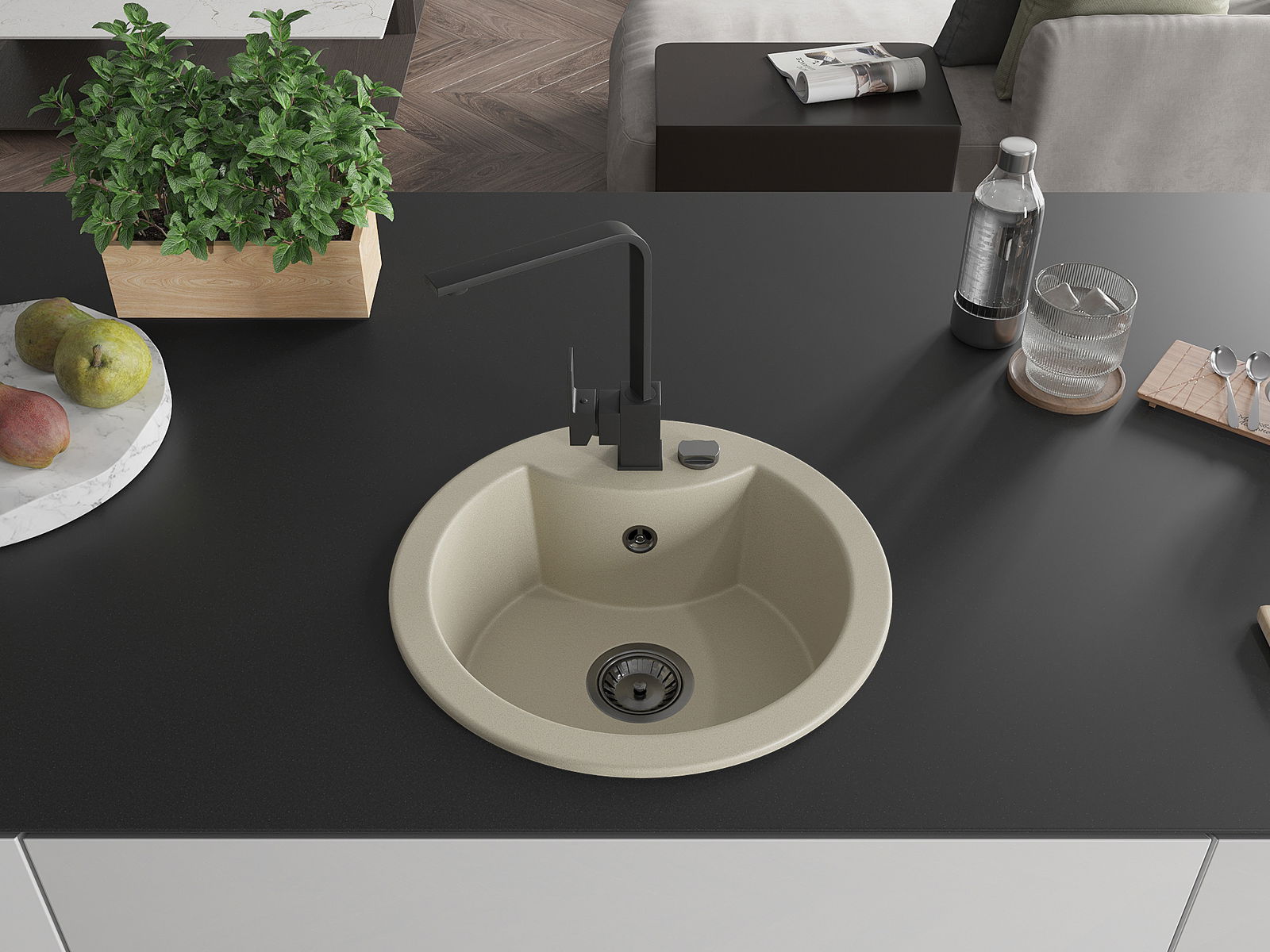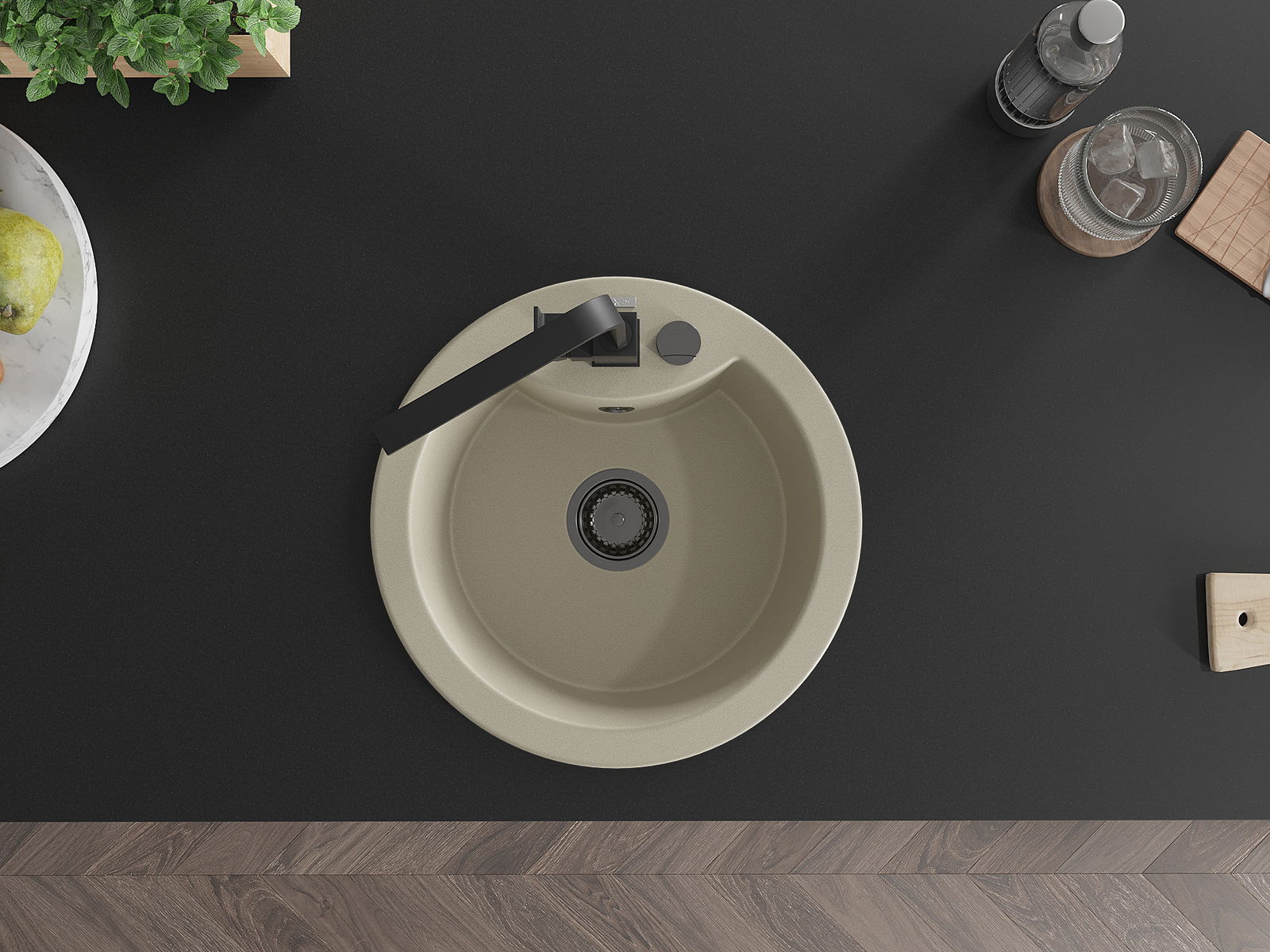 Povrch umývadla je odolný voči škvrnám a sfarbeniu, vďaka čomu sa ľahko čistí a zachováva si svoju farbu po dlhú dobu. Estetický a prakticky dopĺňajúci každú kuchyňu.