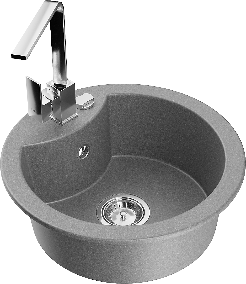 Mexen Diego 1-komorový granitový drez s kuchynskou batériou Rita, sivý - 6512-71-670300-00
