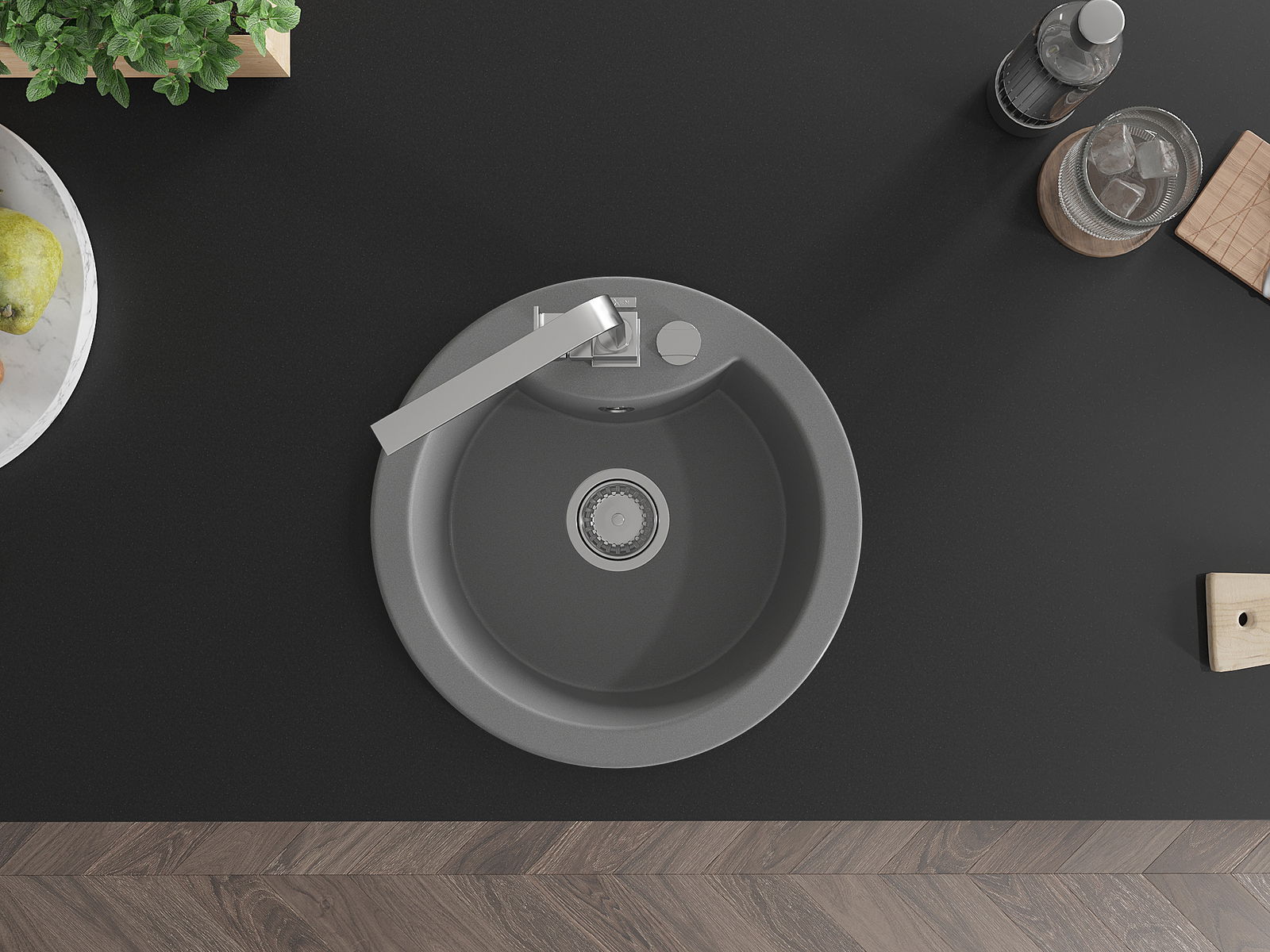 Povrch umývadla je odolný voči škvrnám a sfarbeniu, vďaka čomu sa ľahko čistí a zachováva si svoju farbu po dlhú dobu. Estetický a prakticky dopĺňajúci každú kuchyňu.