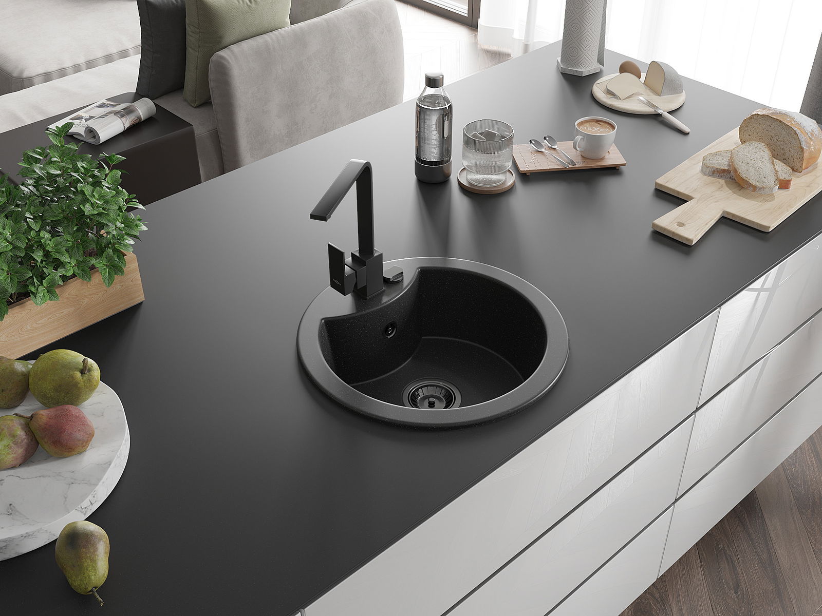 Drez má predfrézovaný otvor s priemerom 35 mm na samostatné prerazenie. Môže sa využiť napríklad na montáž dávkovača na tekutinu, ktorý eliminuje prítomnosť plastových fliaš v kuchyni a pridáva jej elegantné dokončenie.
