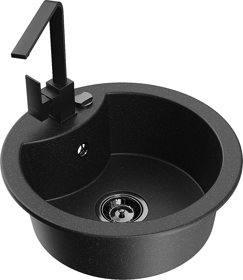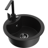 Mexen Diego jednokomorový žulový drez s kuchynskou batériou Rita, čierny/strieborný metalický - 6512-73-670300-70-B