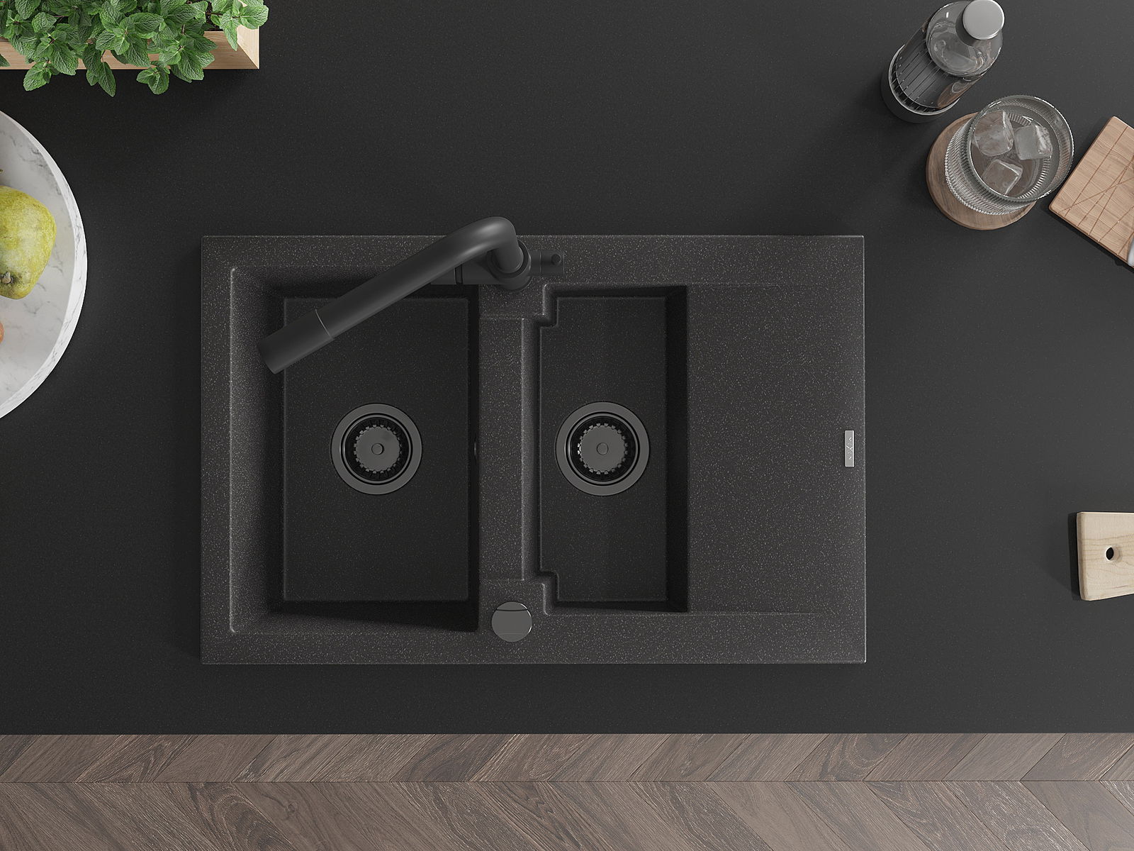 Povrch umývadla je odolný voči škvrnám a sfarbeniu, vďaka čomu sa ľahko čistí a zachováva si svoju farbu po dlhú dobu. Estetický a prakticky dopĺňajúci každú kuchyňu.