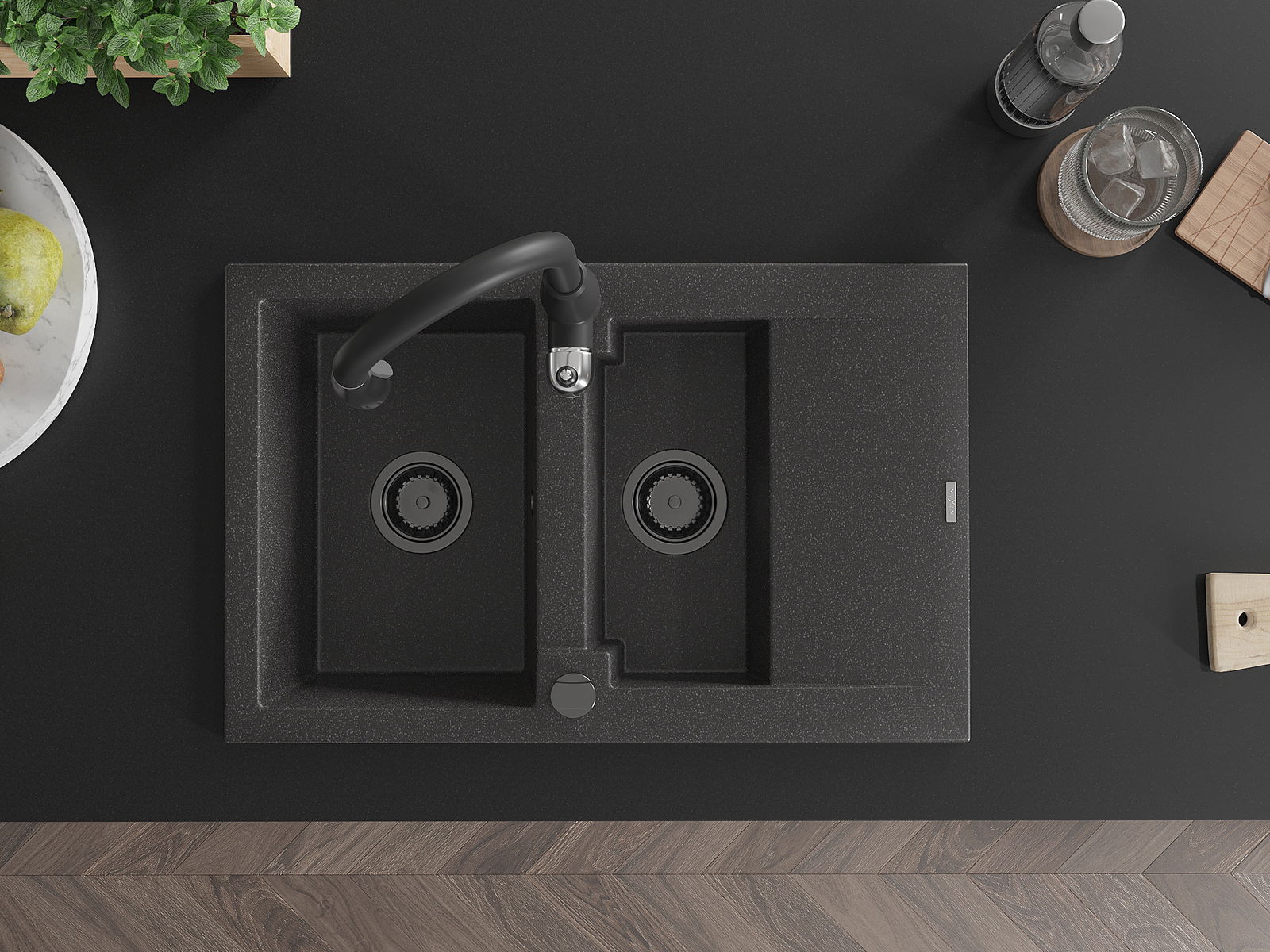 Povrch umývadla je odolný voči škvrnám a sfarbeniu, vďaka čomu sa ľahko čistí a zachováva si svoju farbu po dlhú dobu. Estetický a prakticky dopĺňajúci každú kuchyňu.