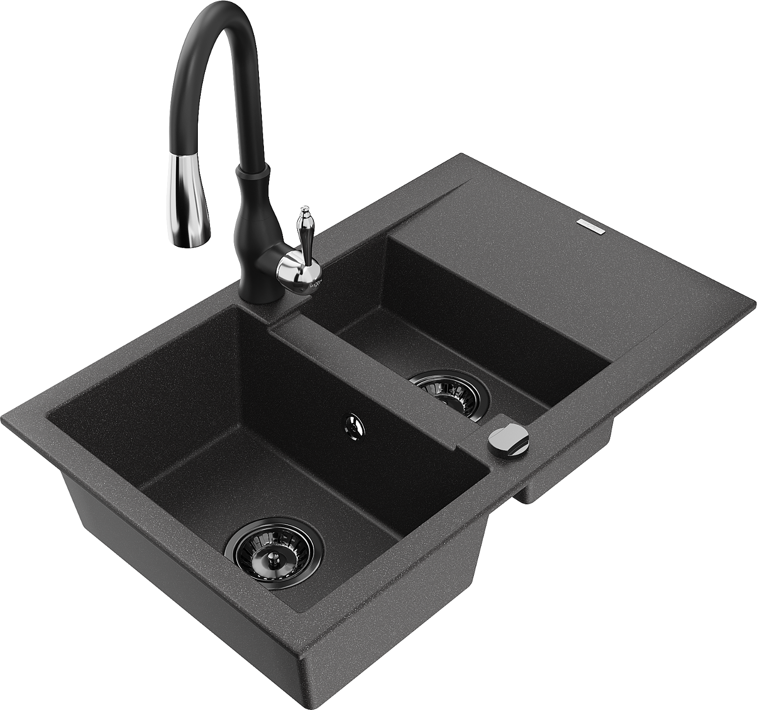 Mexen Gaspar granitový drez 1,5-komorový s odkvapkávačom a kuchynskou batériou Savita, čierny škvrnitý - 6507-76-672601-70-B
