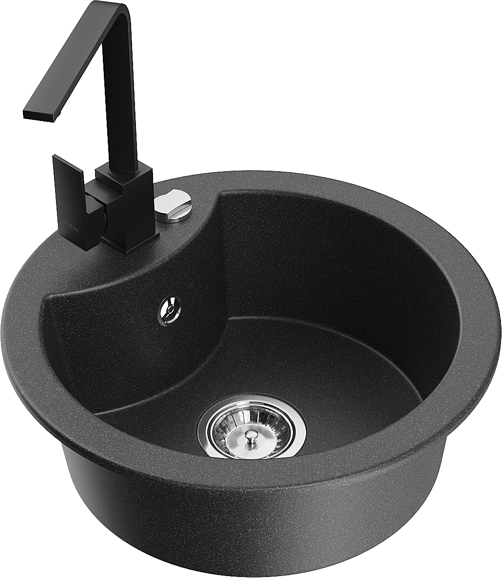 Mexen Diego granitový drez 1-komorový s kuchynskou batériou Rita, čierny bodkovaný - 6512-76-670300-70