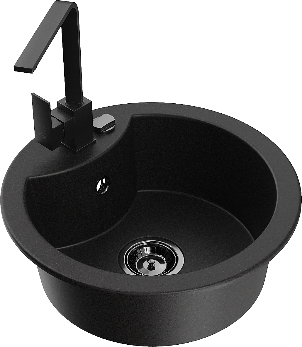 Mexen Diego granitový drez s 1 komorou s kuchynskou batériou Rita, čierny - 6512-77-670300-70-B