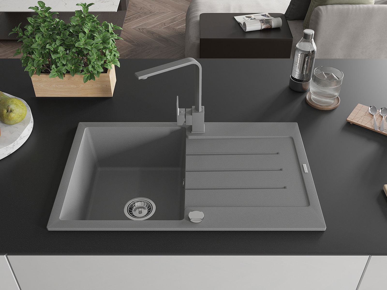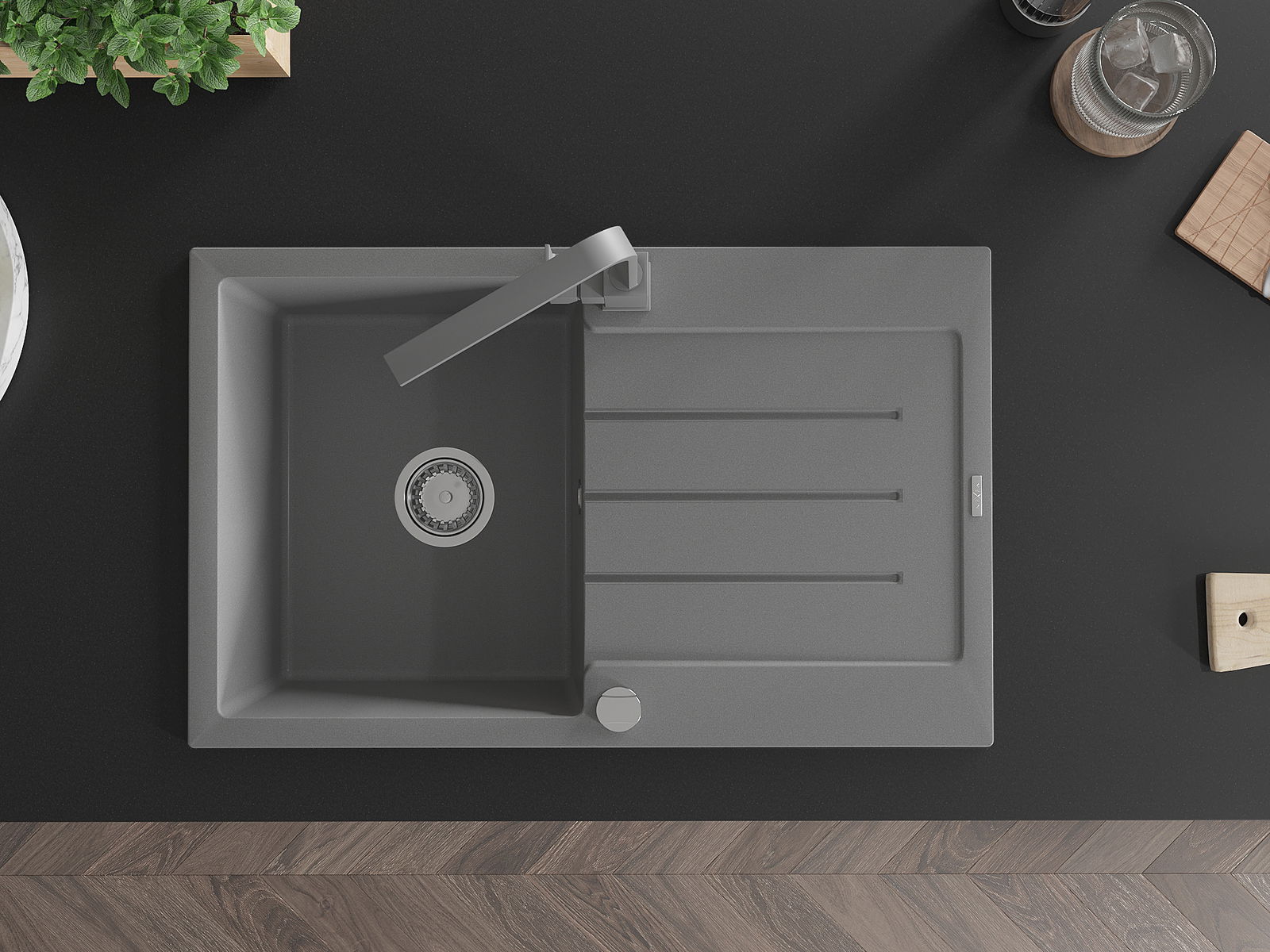 Povrch umývadla je odolný voči škvrnám a sfarbeniu, vďaka čomu sa ľahko čistí a zachováva si svoju farbu po dlhú dobu. Estetický a prakticky dopĺňajúci každú kuchyňu.